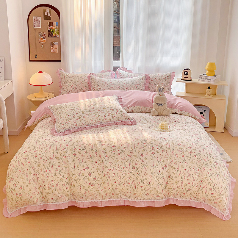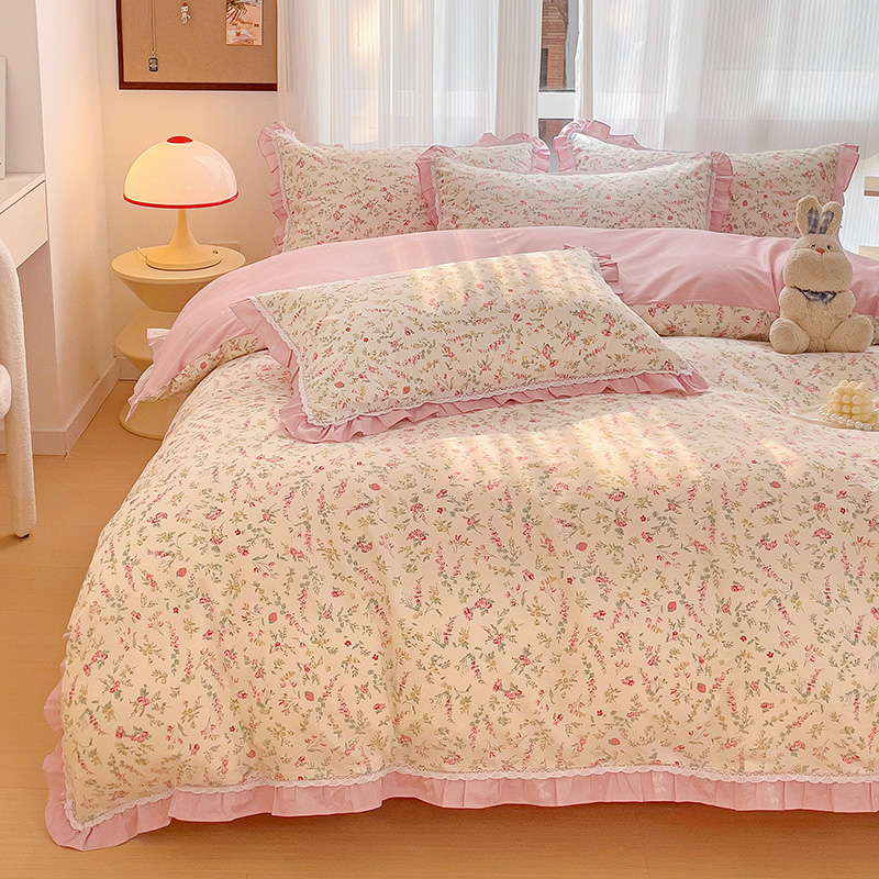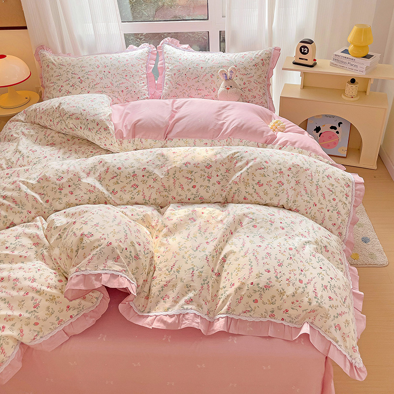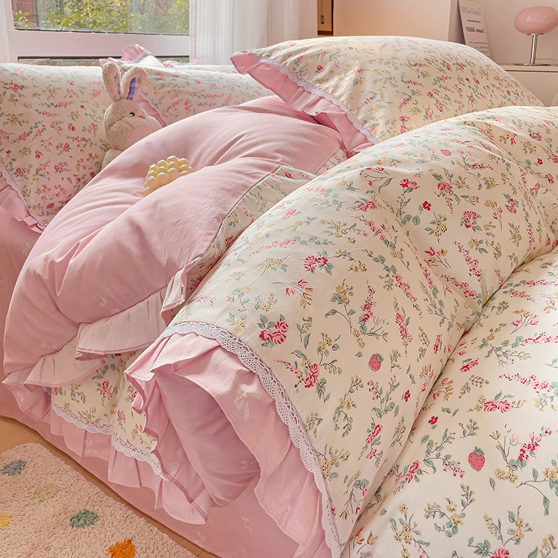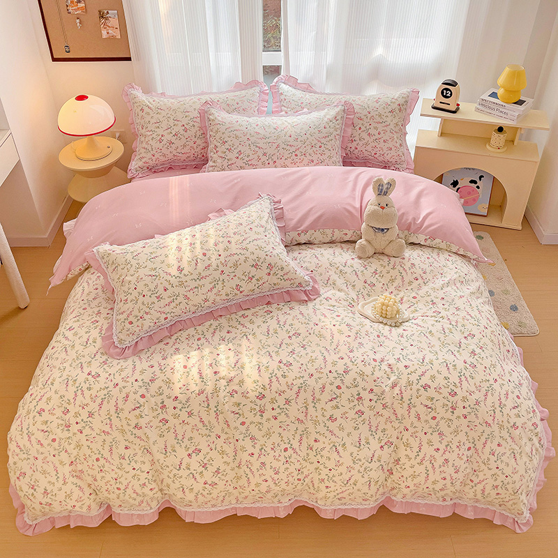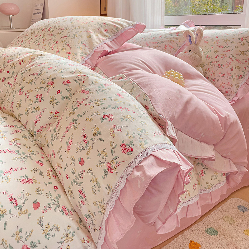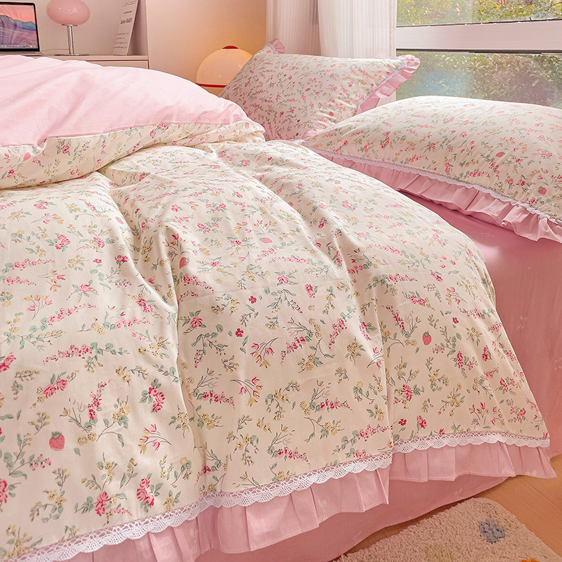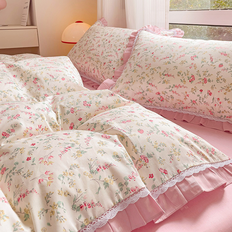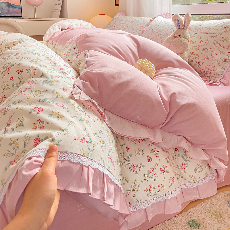 棉生活家纺 2025新款全棉小清新花边款蕾丝四件套 百花园