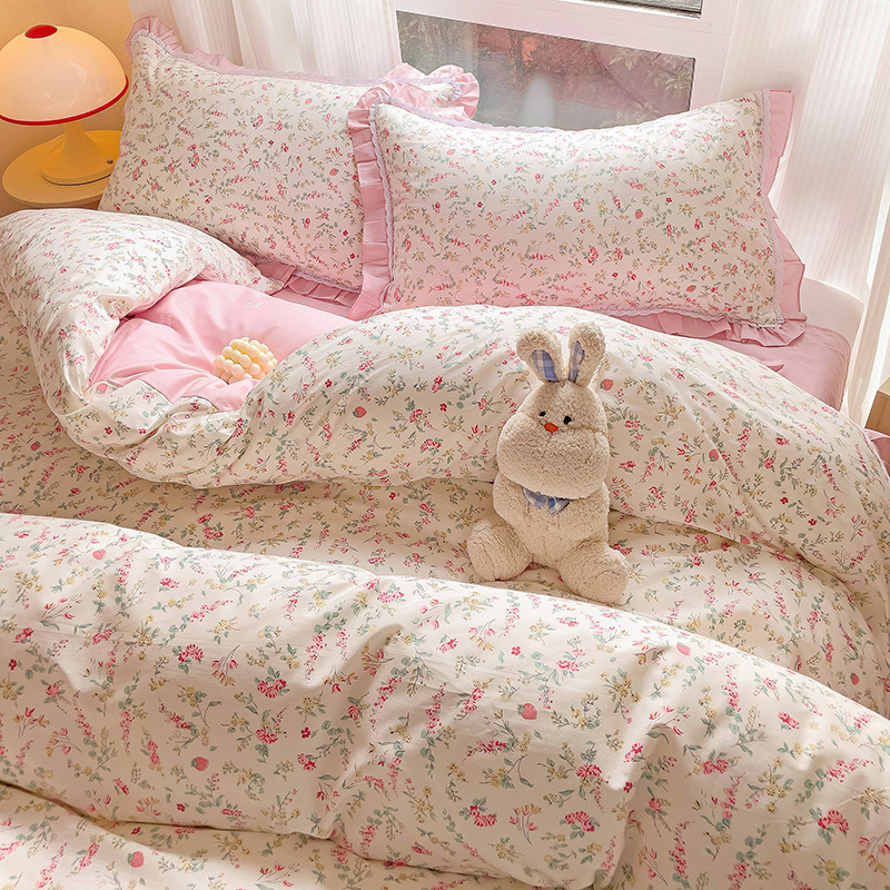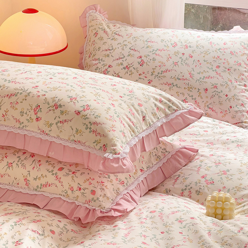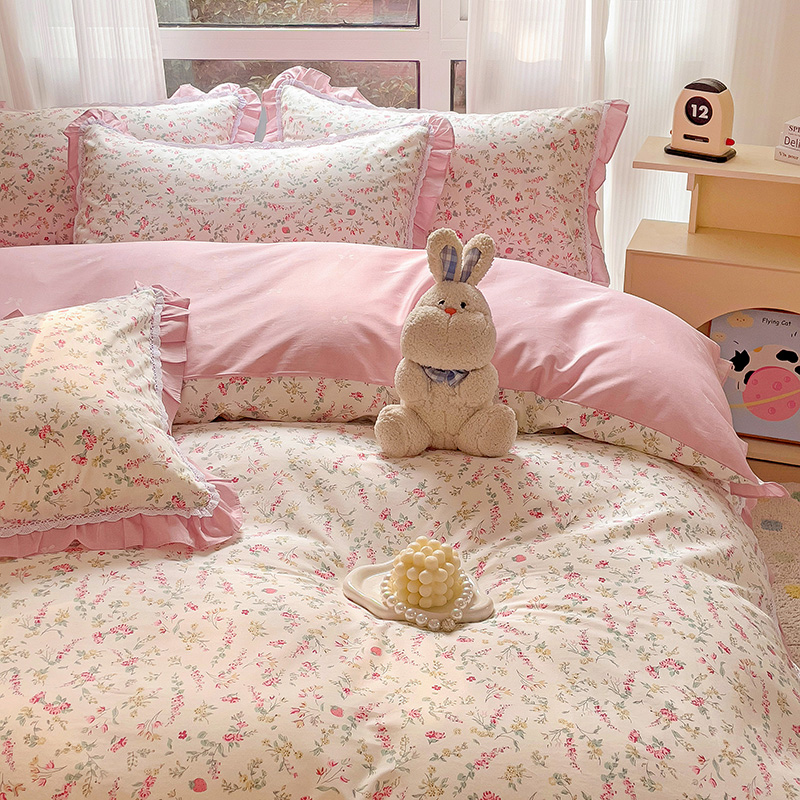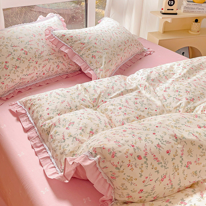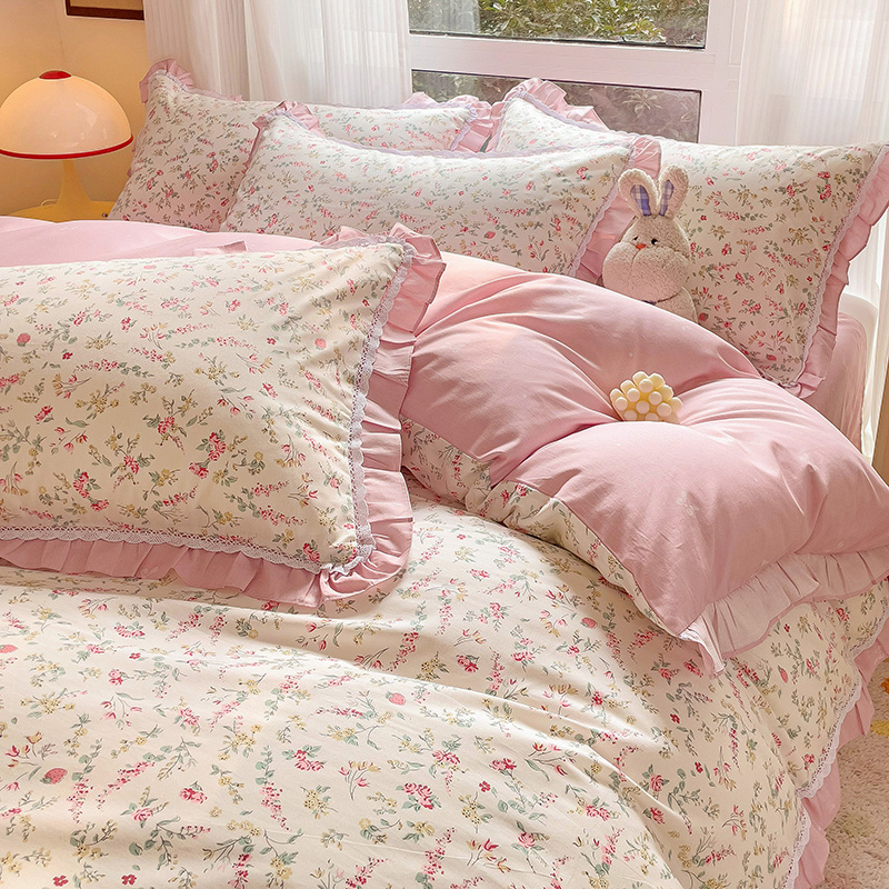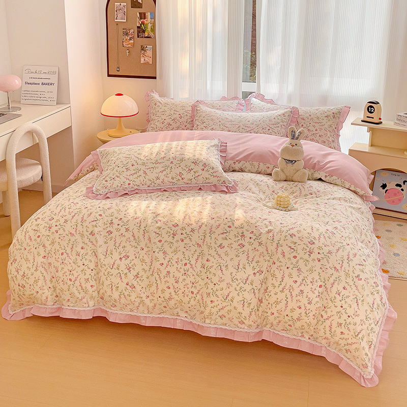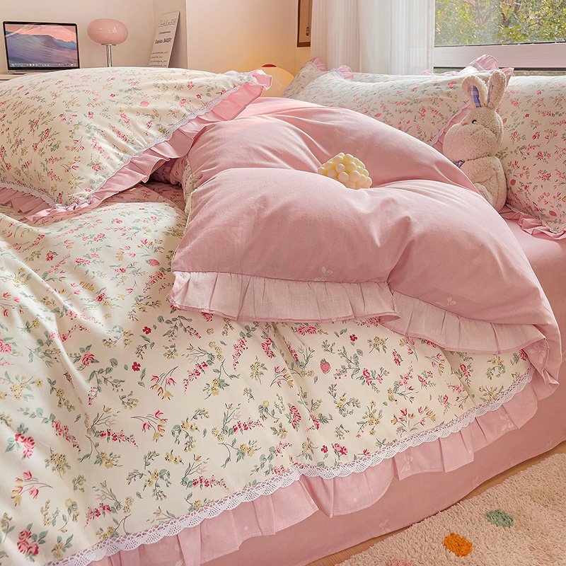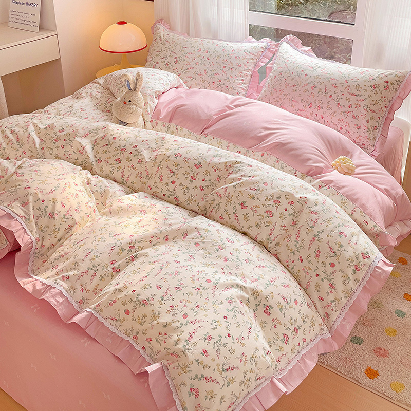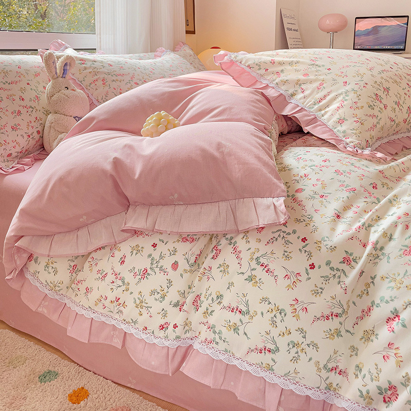 棉生活家纺 2025新款全棉小清新花边款蕾丝四件套 百花园