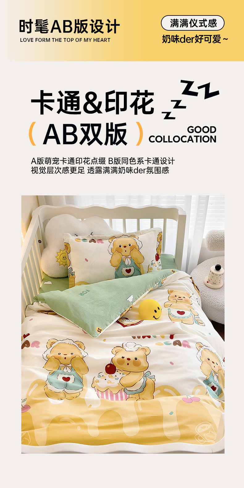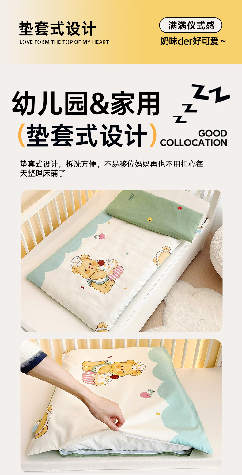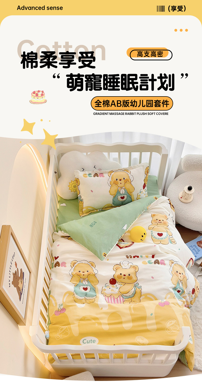 当前位置: 91家纺网 > 商品网购 > 婴童用品 > 婴童床品套件 > 2025新款全棉AB版幼儿园三件套宝宝午睡被子六件套儿童被套多件套 雪芙奶糕