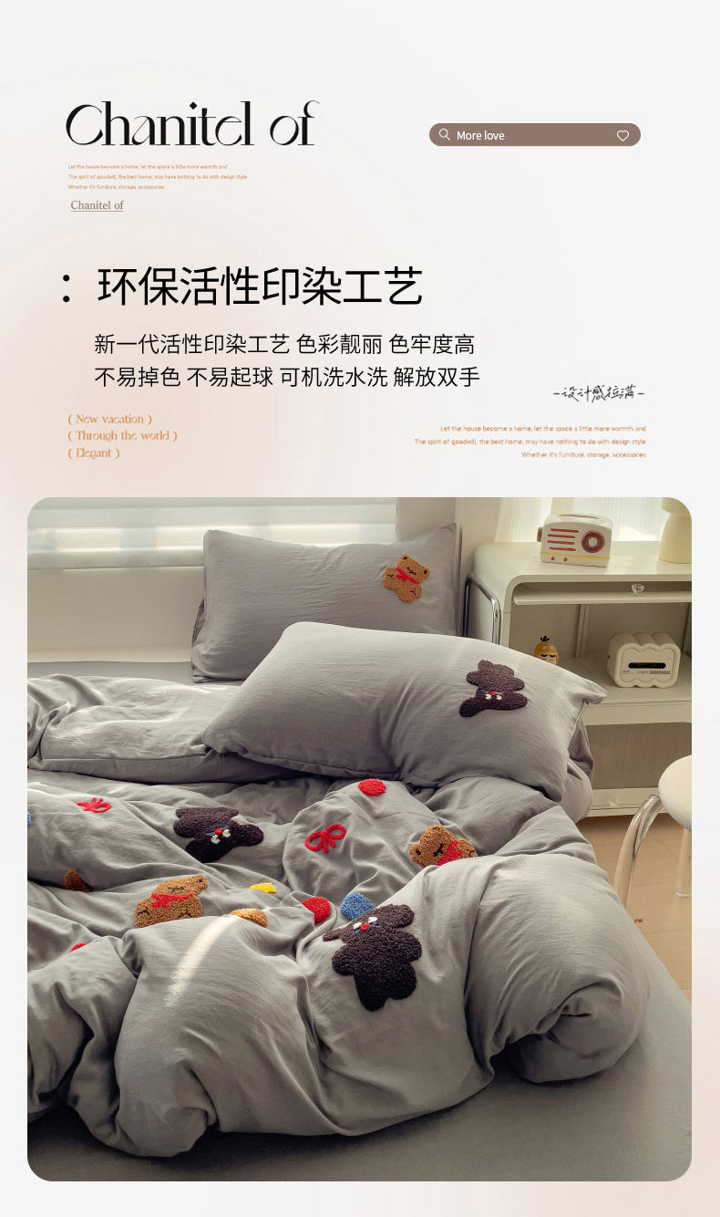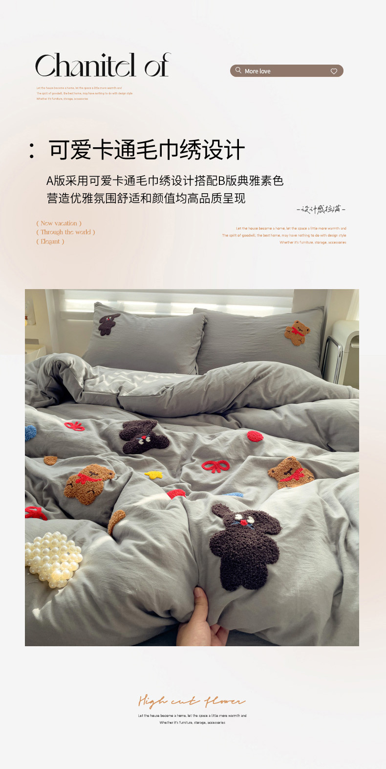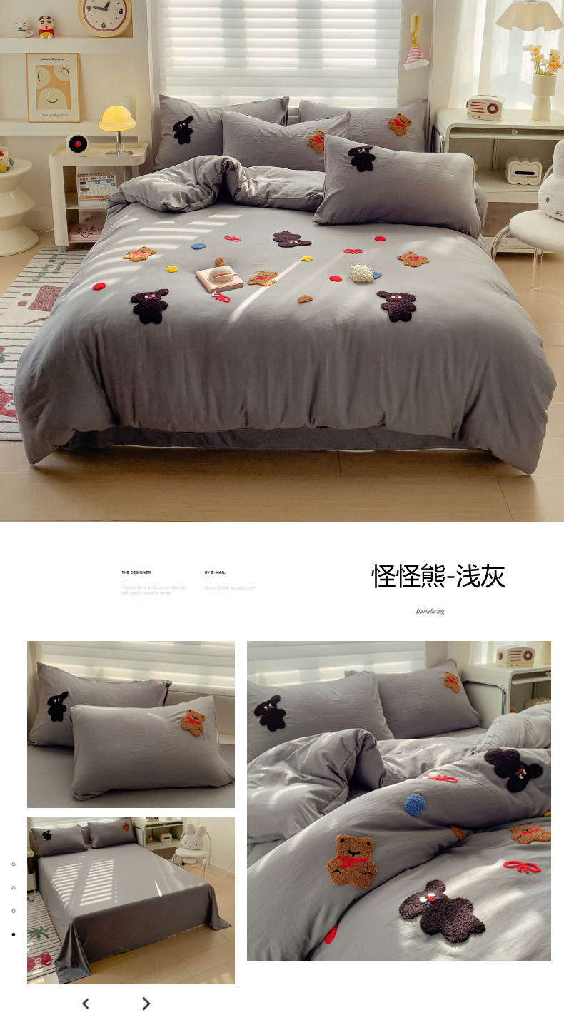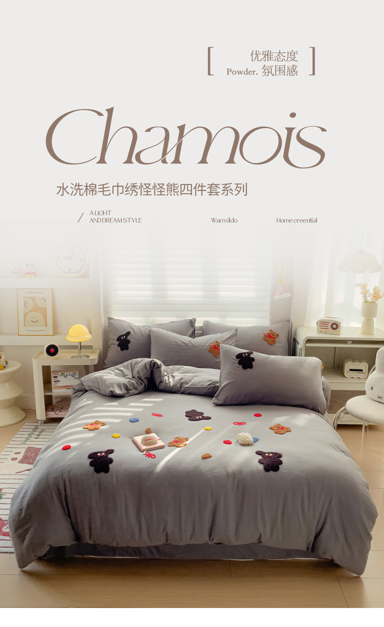 当前位置: 91家纺网 > 商品网购 > 床品套件 > 四件套 > 水洗棉四件套 > 花伞家居 2025新款搞怪毛巾绣水洗棉怪怪熊四件套【提供买家秀】 怪怪熊-浅灰