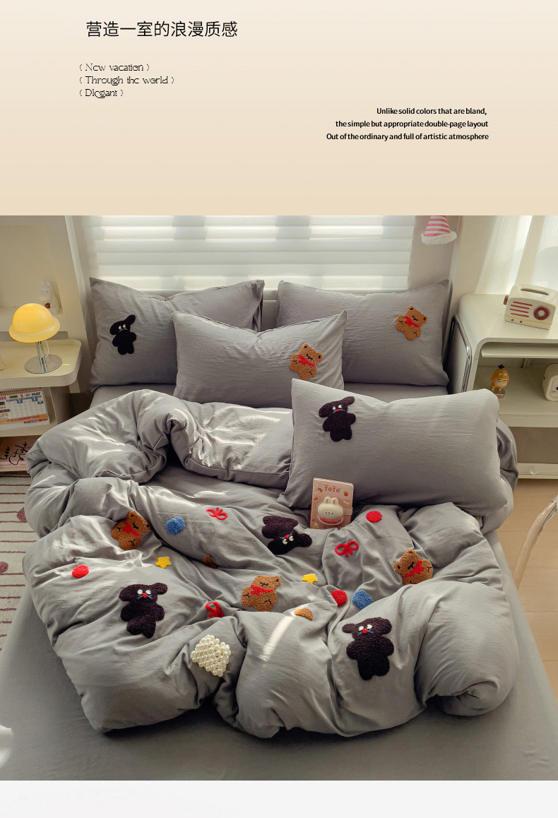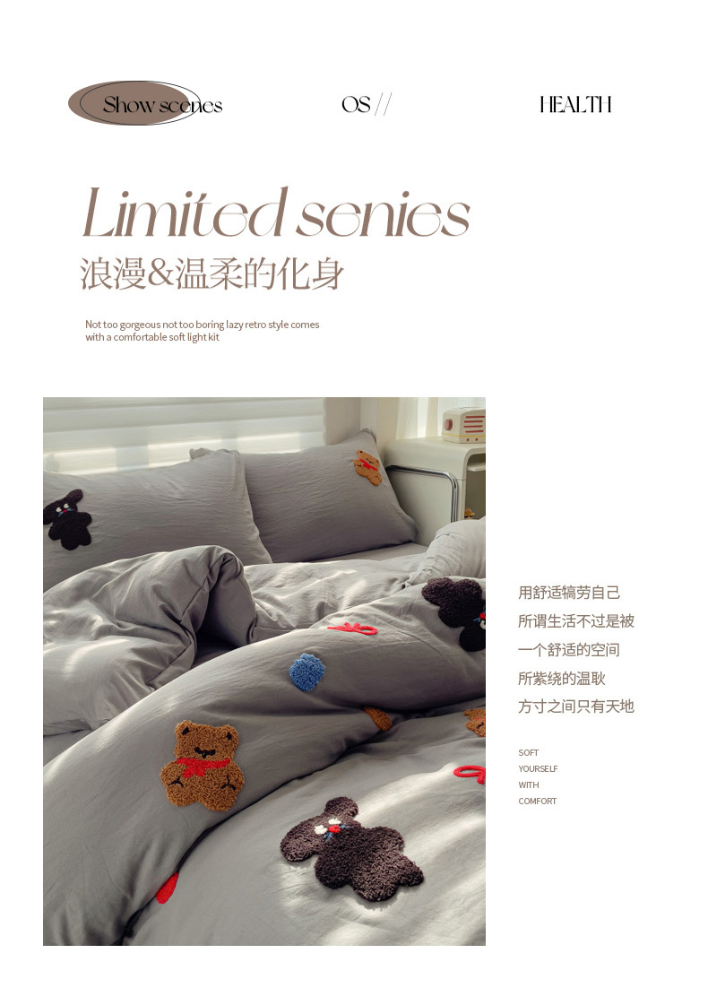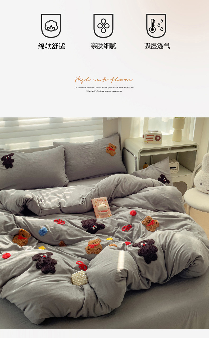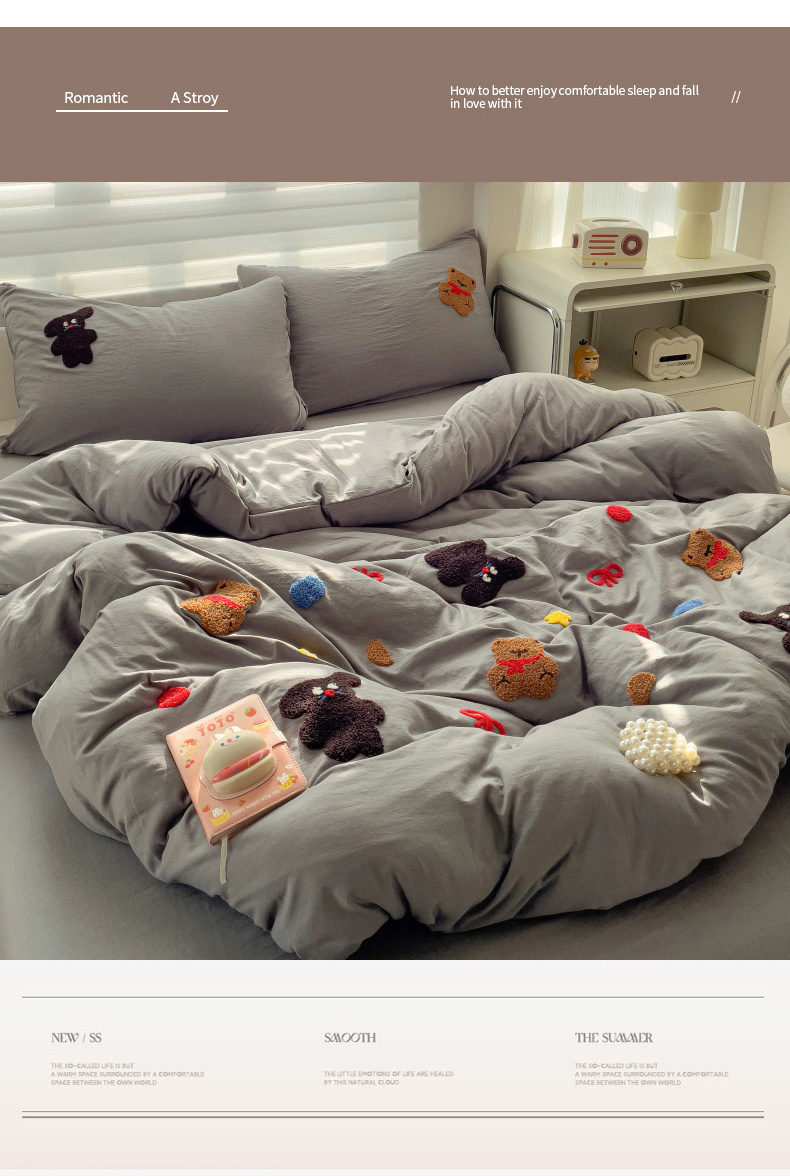 当前位置: 91家纺网 > 商品网购 > 床品套件 > 四件套 > 水洗棉四件套 > 花伞家居 2025新款搞怪毛巾绣水洗棉怪怪熊四件套【提供买家秀】 怪怪熊-浅灰