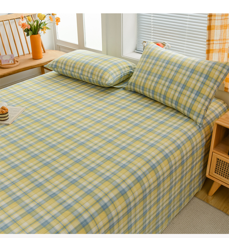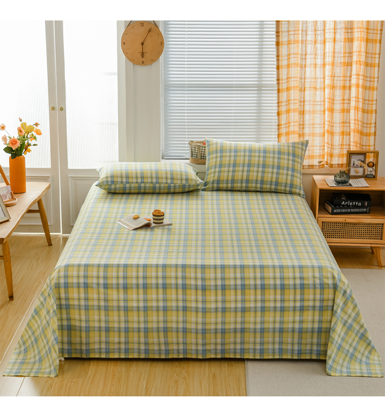 柠萌家居 2025新款无印风全棉色织A类母婴级纯棉水洗棉床单 简爱黄格