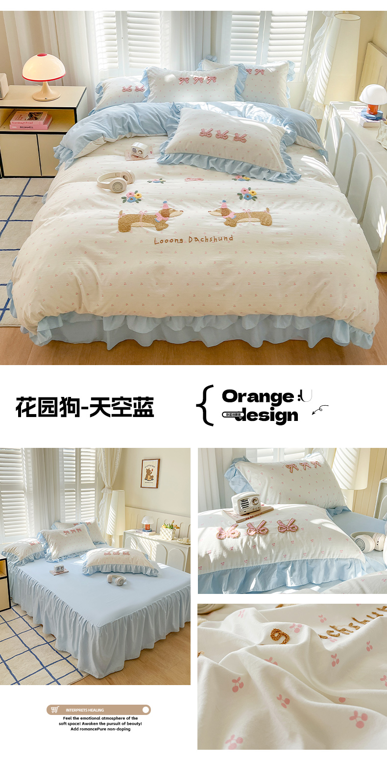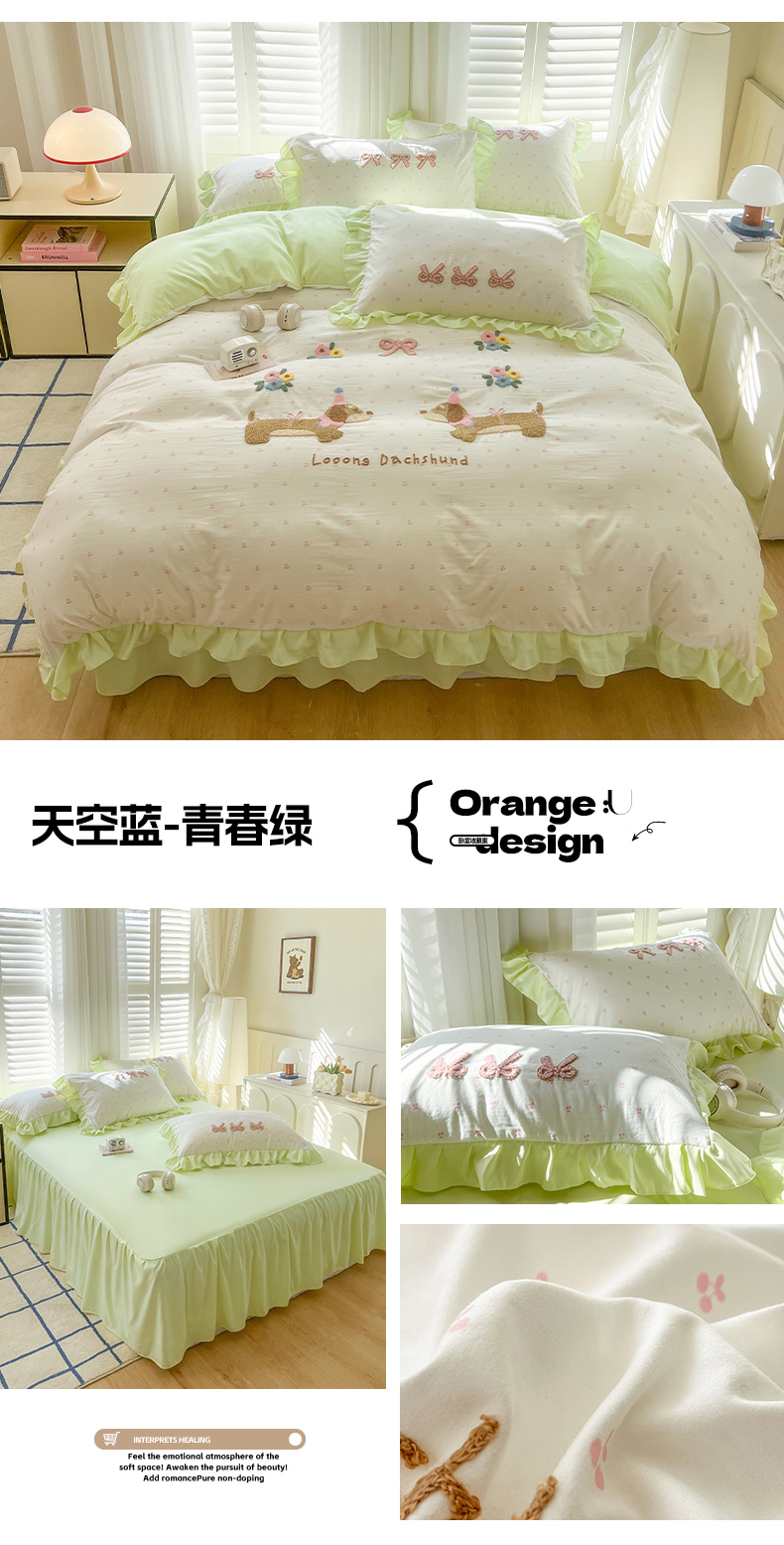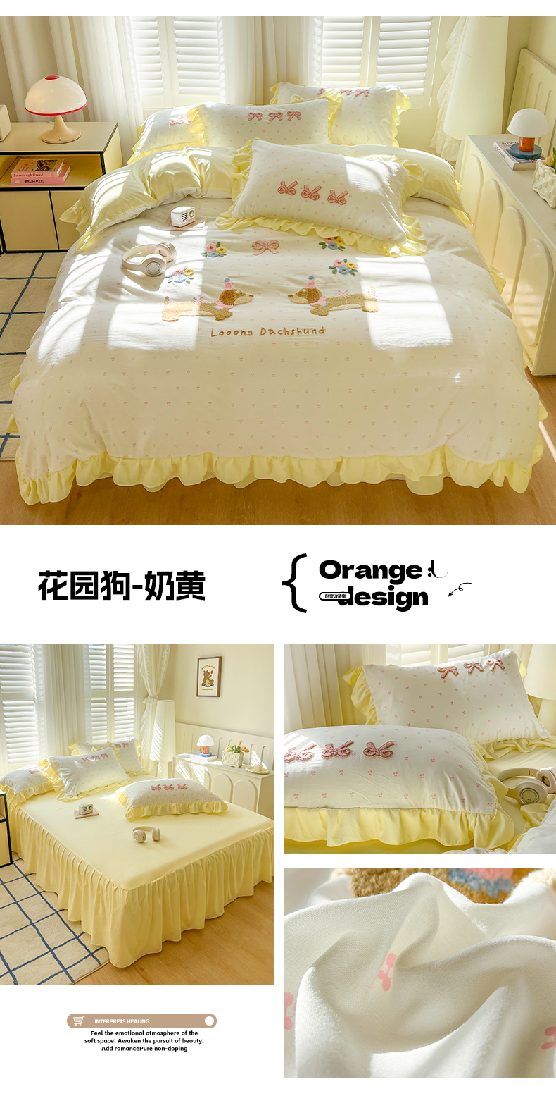 (总)韩都家居 2023新款韩版工艺款床裙款雪梨系列四件套,雪莉-桔,雪莉-浅玉,雪莉-星空兰,雪莉-芝士奶油