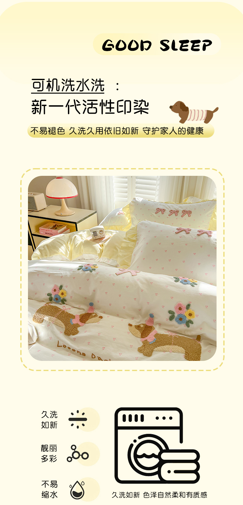 商品名称:(总)韩都家居 2025新款韩版卡通风水洗棉毛巾绣四件套系列-花园狗