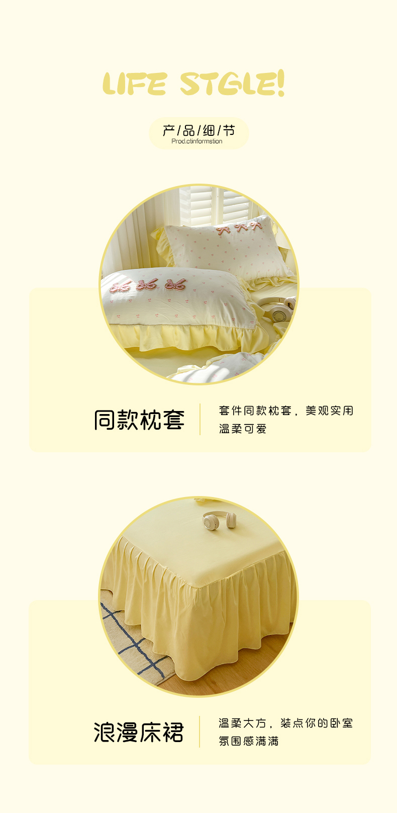(总)韩都家居 2023新款公主风花边双拼四件套,粉玉奶黄,粉玉浅紫,奶油黄,奶油青绿,青绿奶黄,天蓝浅粉