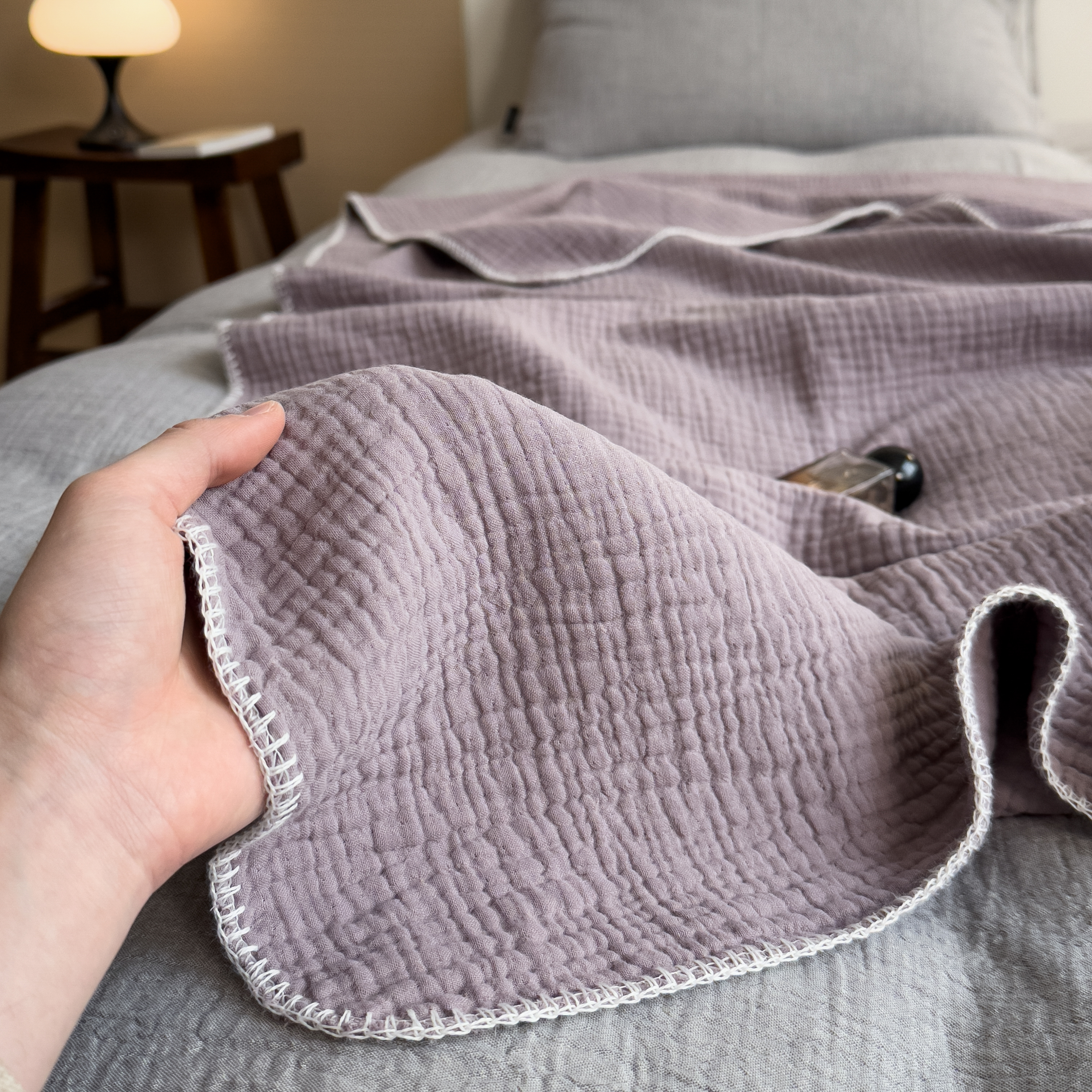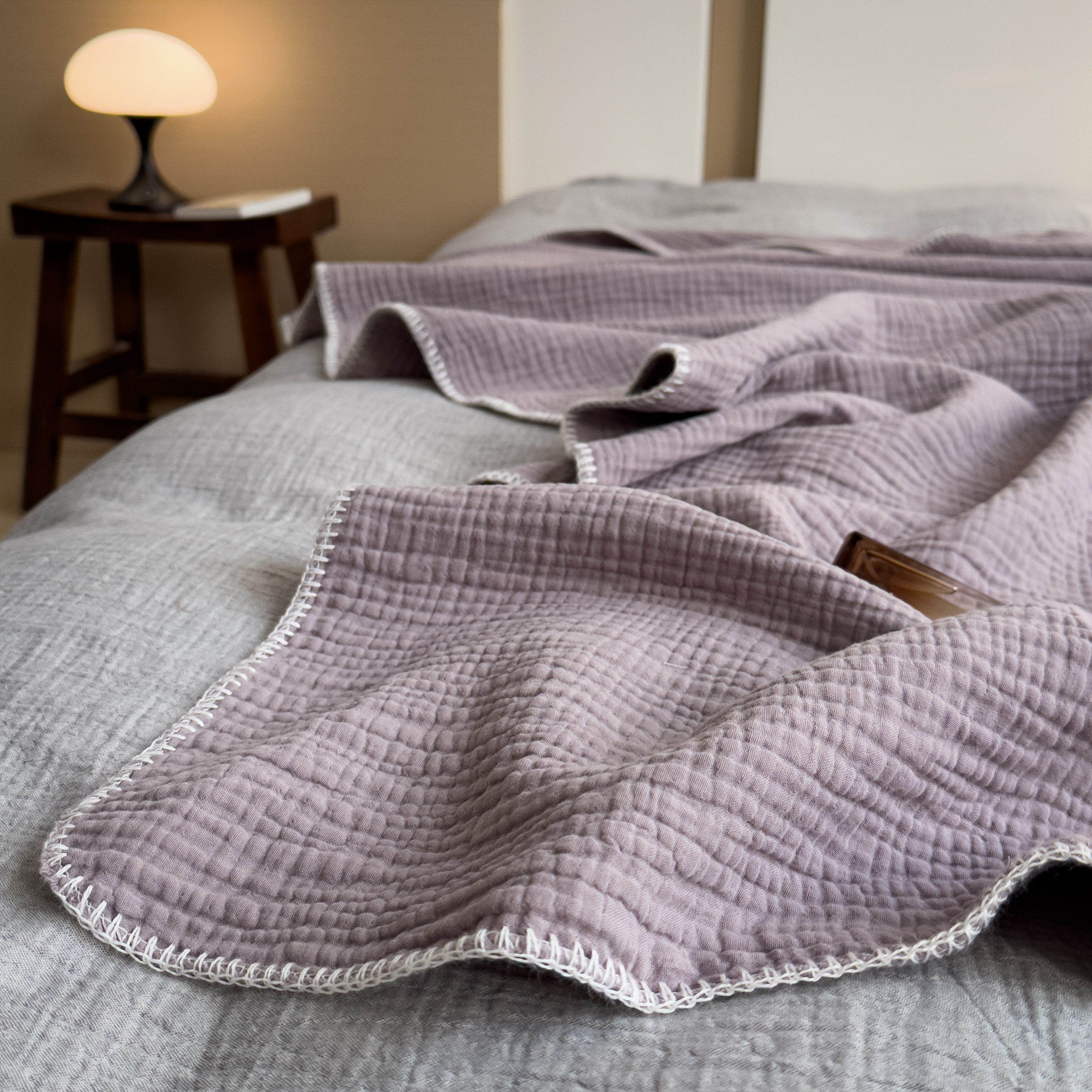 席世家四层纱布毯 丁香紫