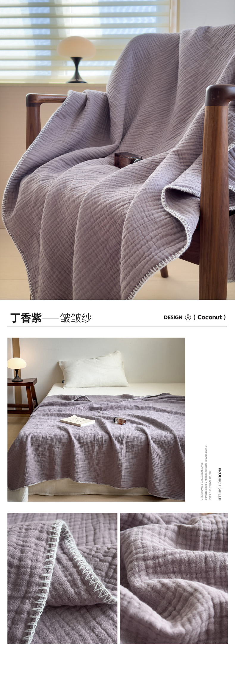 商品名称:席世家四层纱布毯 丁香紫