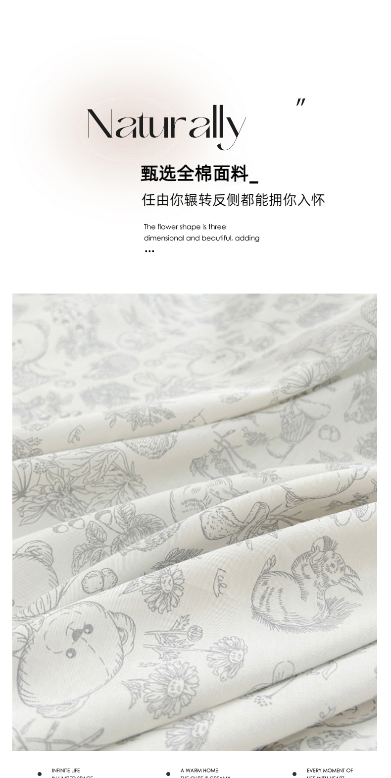 (总)柠馨 2025新款13372全棉印花四件套,爱心小熊,百变小熊喵,编制生活咖,编制生活绿,波西米亚,淡若烟云,点点,复苏,馥郁,格森,狗狗派对,哈皮熊,花夕,花语,欢乐兔,卡夫小熊,可爱森林,空白格,洛伊,麦语,觅儿,沐风,绮幻,芊芊,浅薇,倾心,瑞雪,森友季,拾忆,素颜幽兰,仙子,小甜狗,星空熊,星雅,叙白,雅灰,阳光森林,叶澜,枝枝桃桃