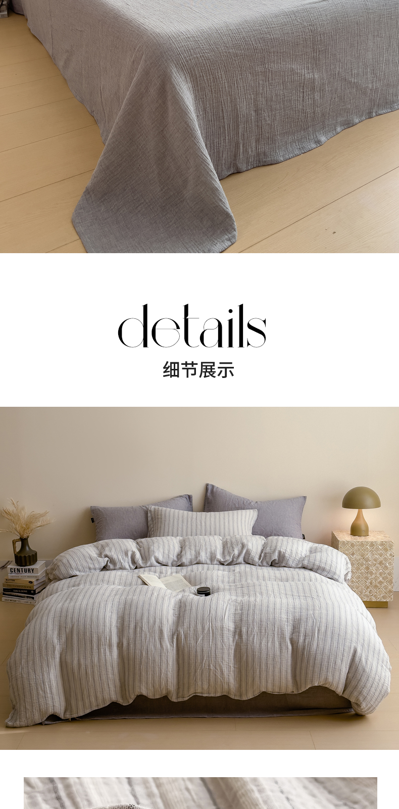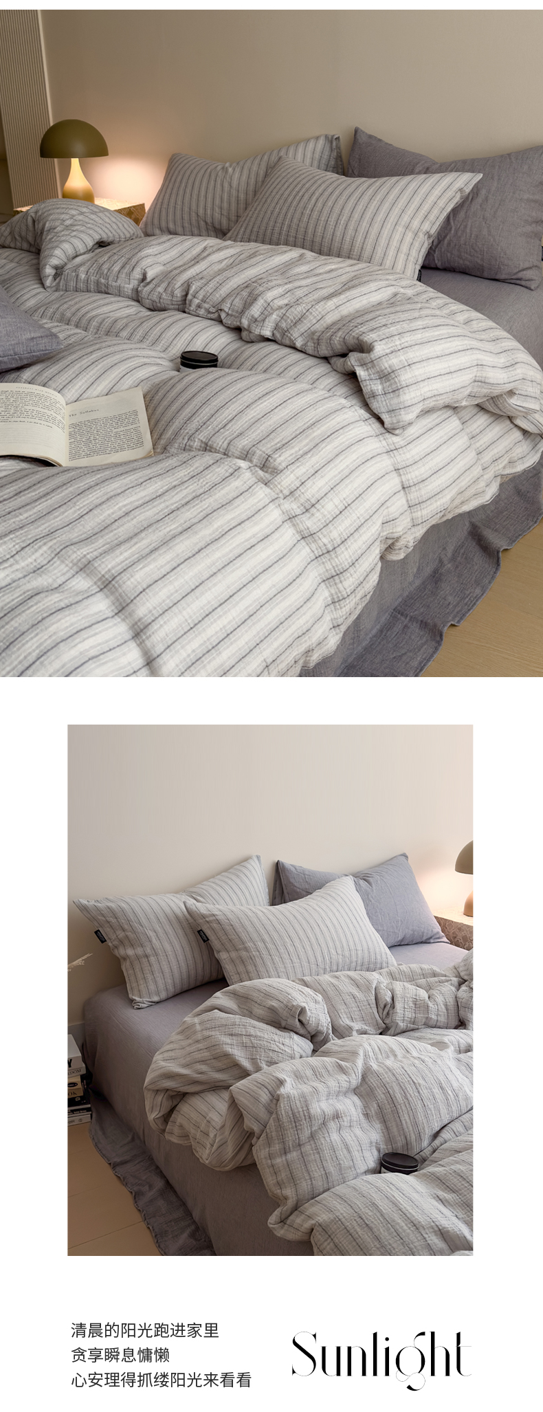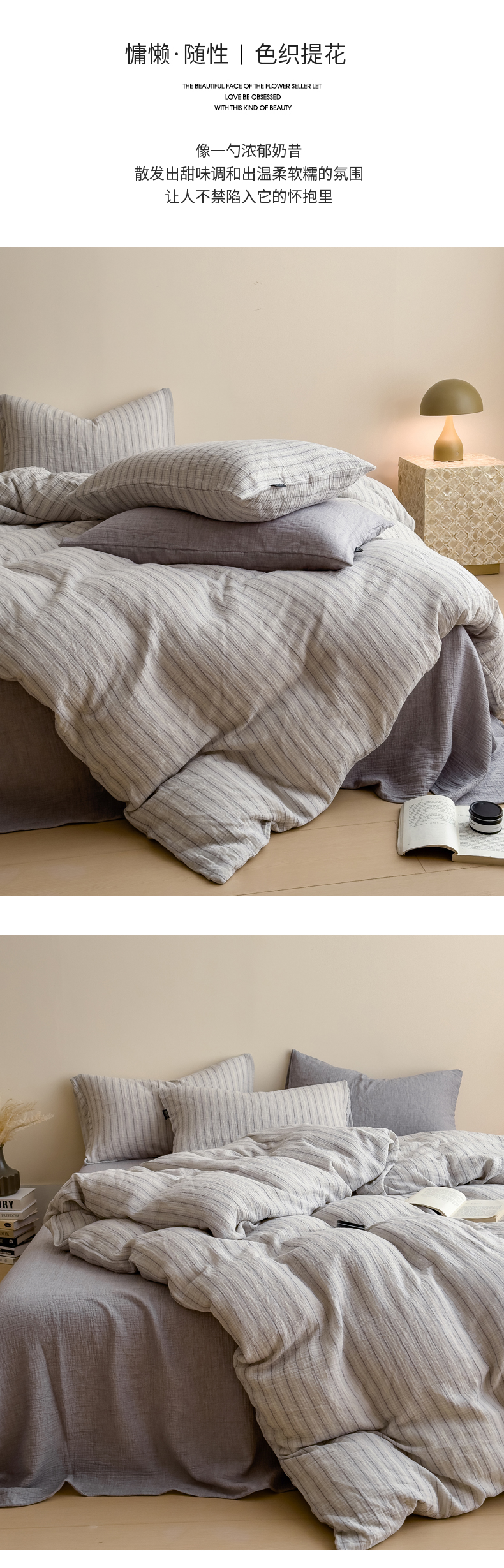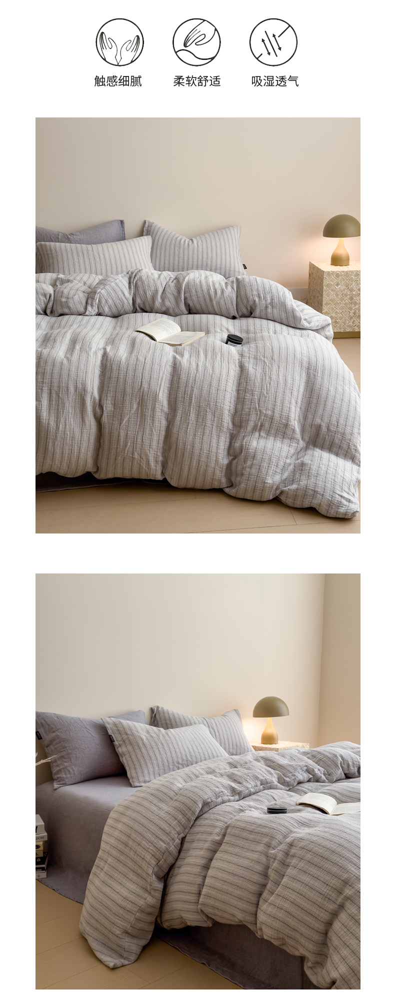 当前位置: 91家纺网 > 商品网购 > 床品套件 > 四件套 > 全棉普通四件套 > 席世家条纹皱皱纱-午逅 午逅-浅灰