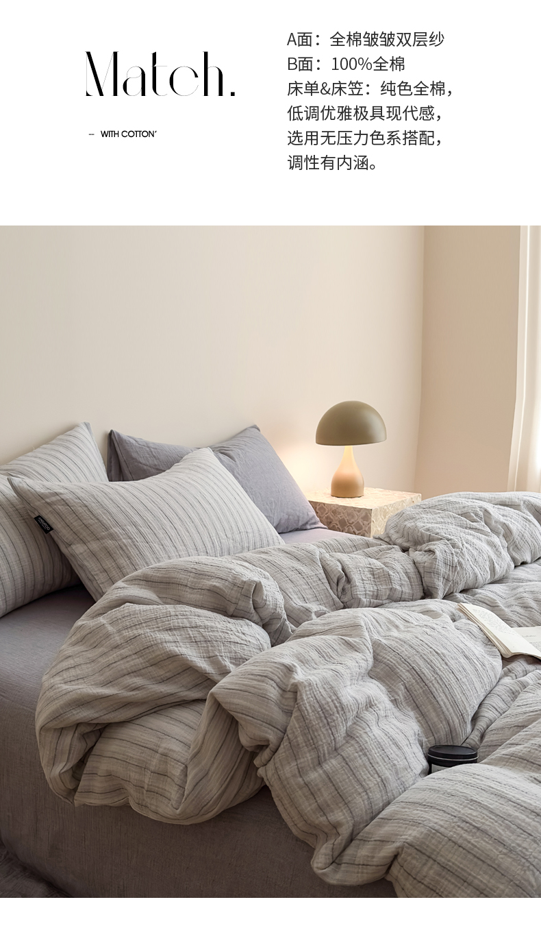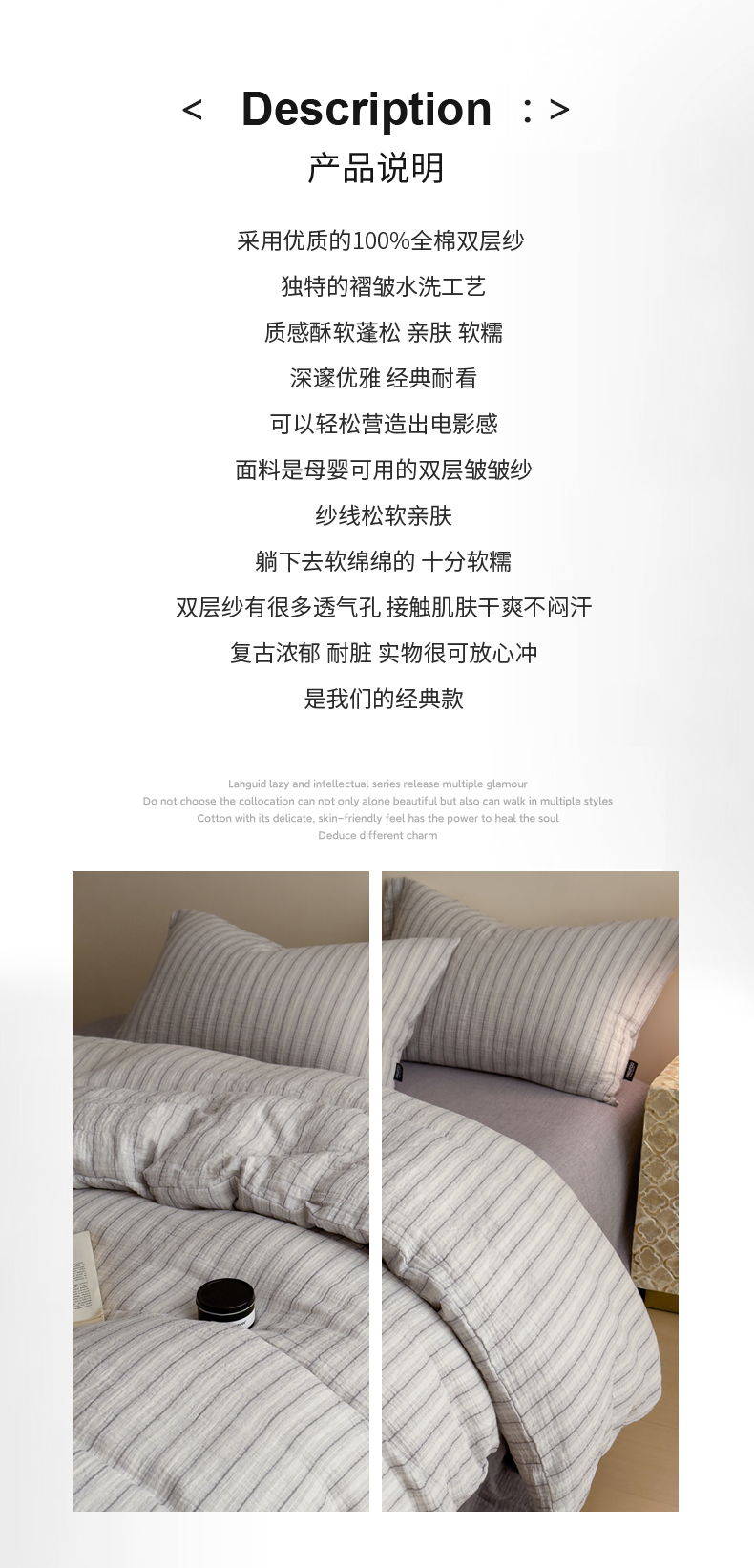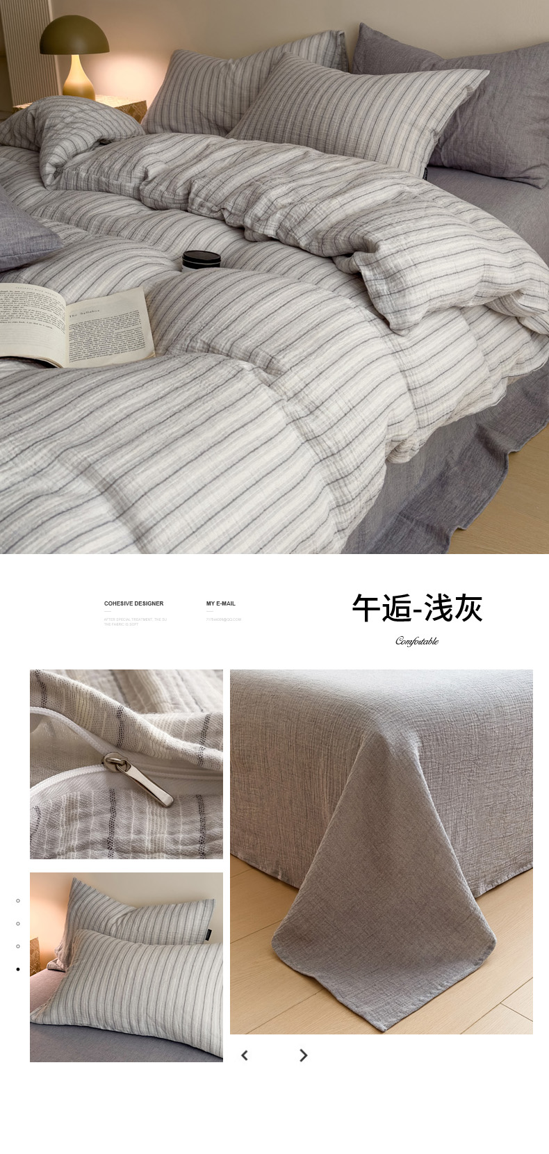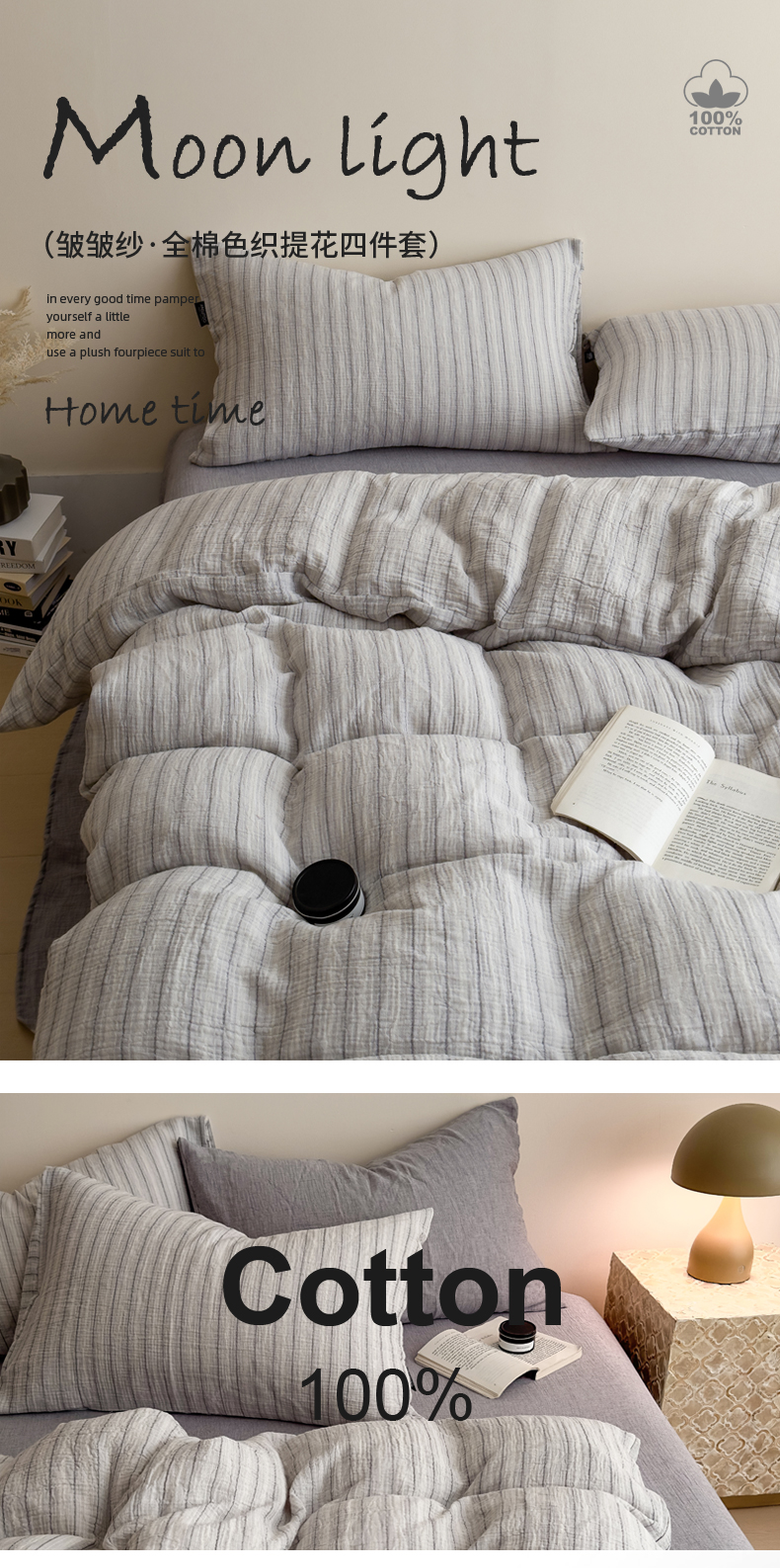 当前位置: 91家纺网 > 商品网购 > 床品套件 > 四件套 > 全棉普通四件套 > 席世家条纹皱皱纱-午逅 午逅-浅灰