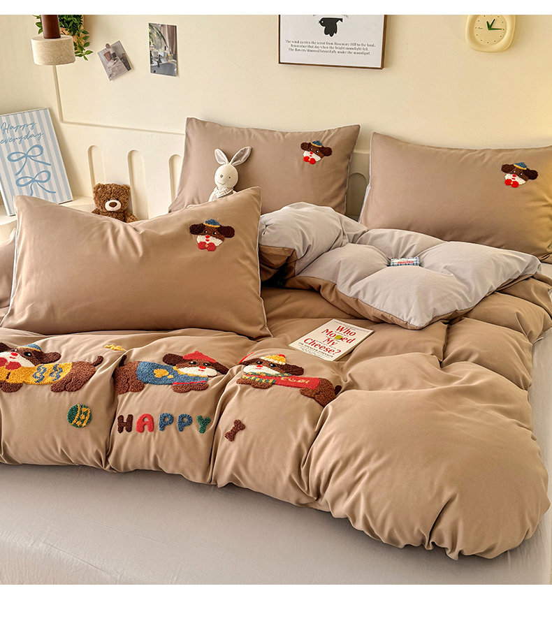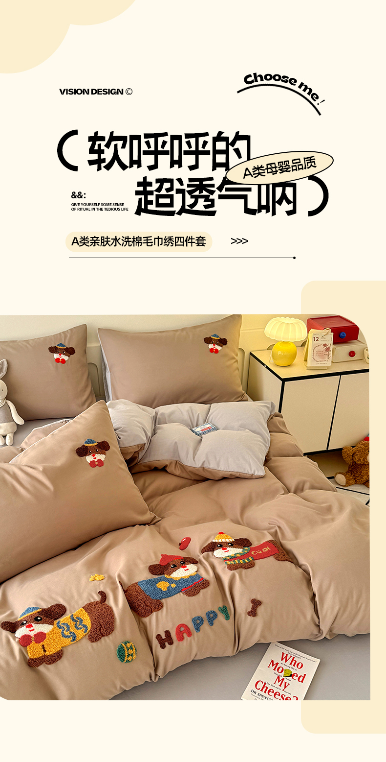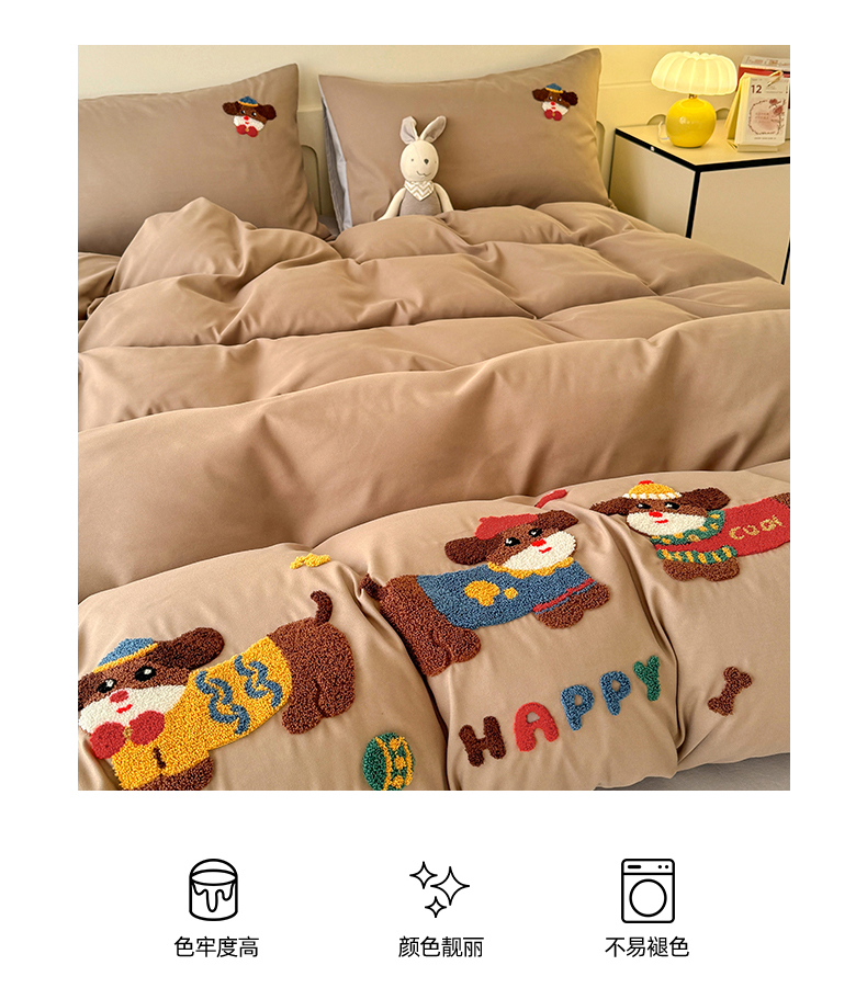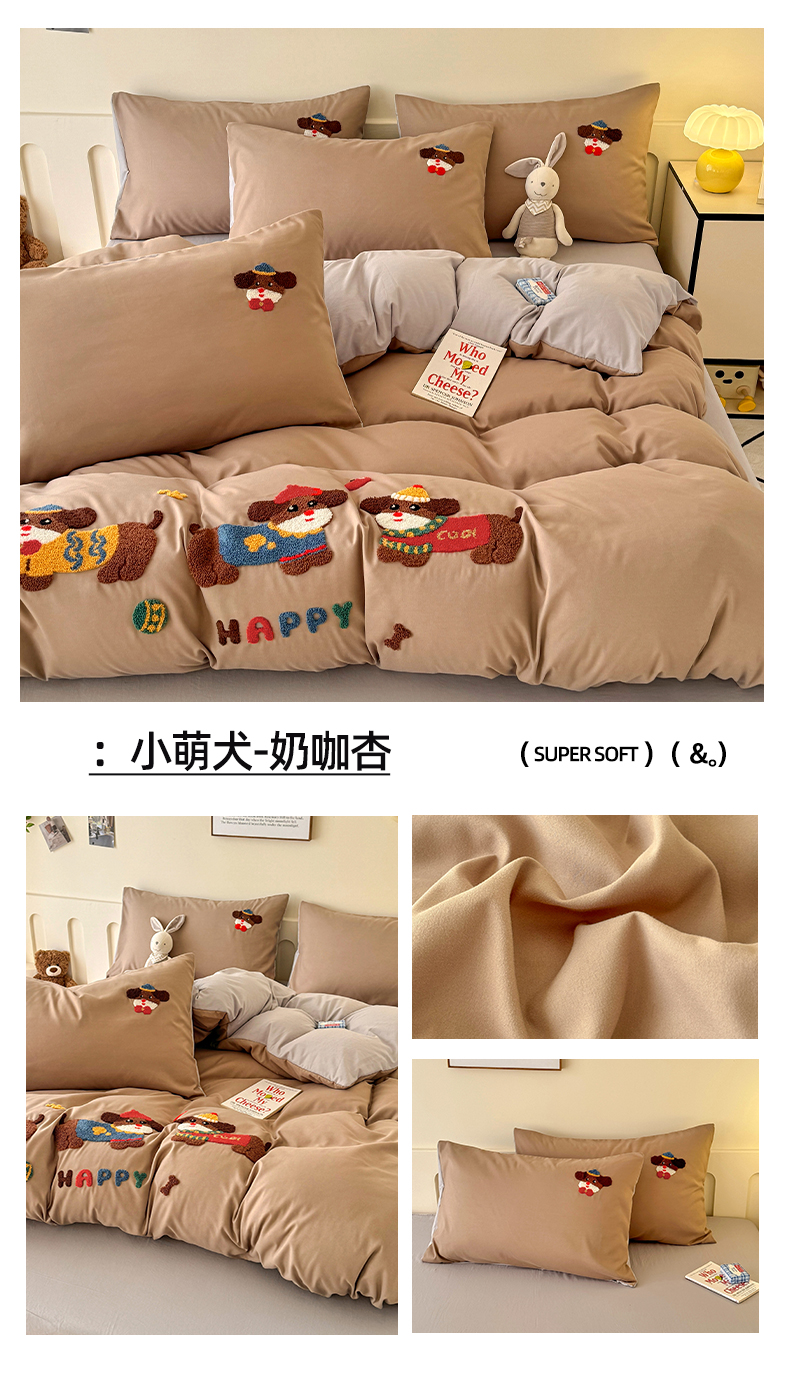 当前位置: 91家纺网 > 商品网购 > 床品套件 > 四件套 > 水洗棉四件套 > 优卡迪家纺馆 2025新款110克水洗棉毛巾绣四件套【下载文件夹包含买家秀】 小萌犬-奶咖杏