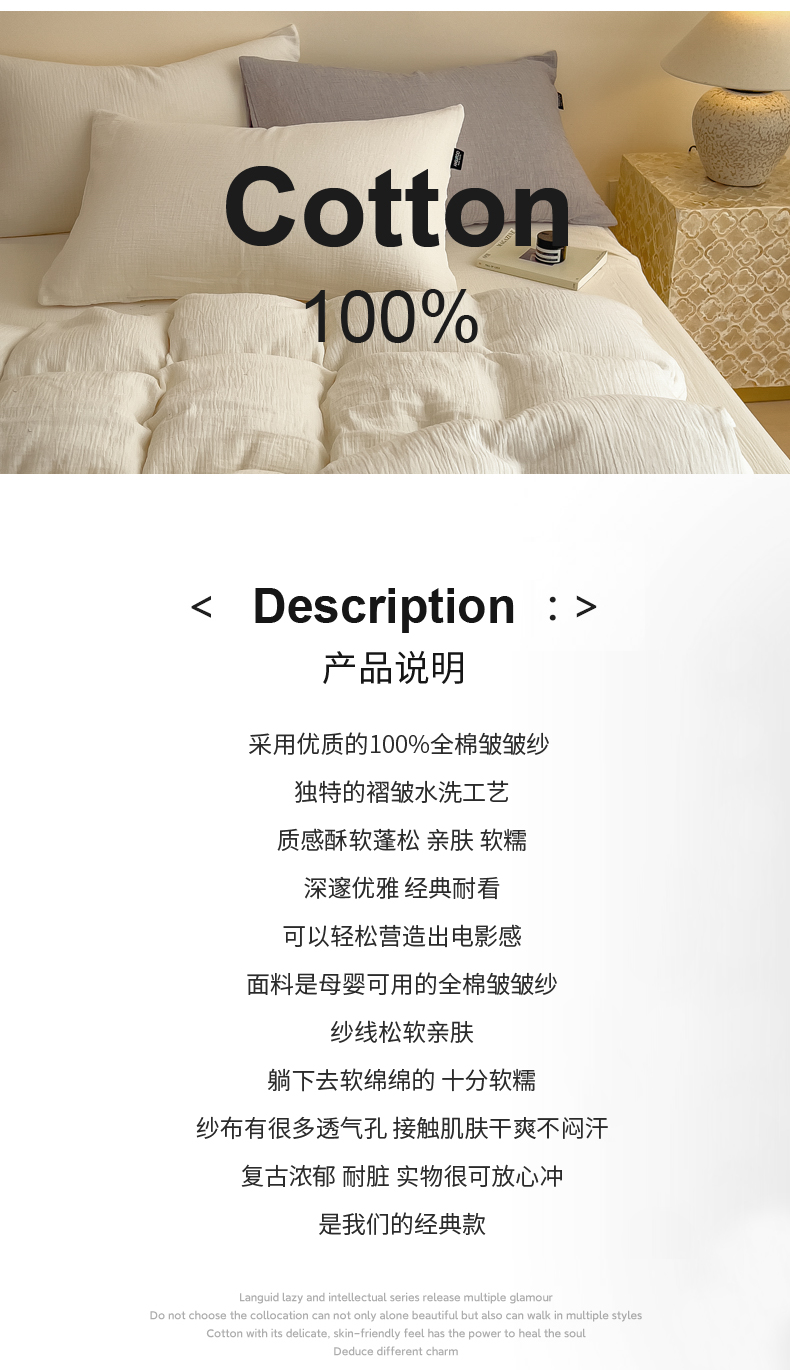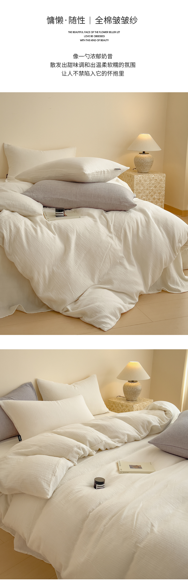 当前位置: 91家纺网 > 商品网购 > 床品套件 > 四件套 > 全棉普通四件套 > 席世家皱皱纱四件套 米白