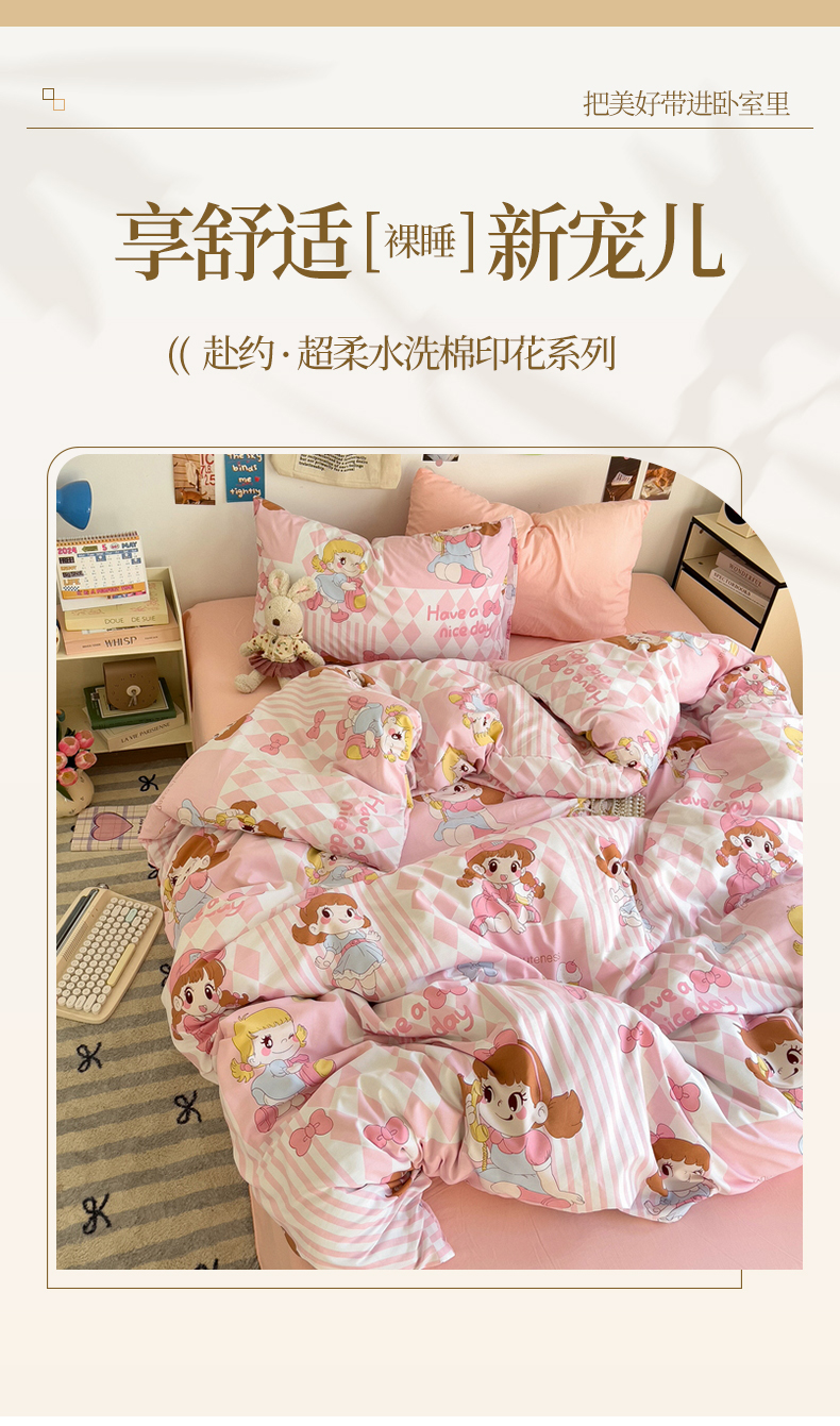 当前位置: 91家纺网 > 商品网购 > 床品套件 > 四件套 > 水洗棉四件套 > 水墨江南 2025新款超柔水洗棉系列四件套 阳光女孩