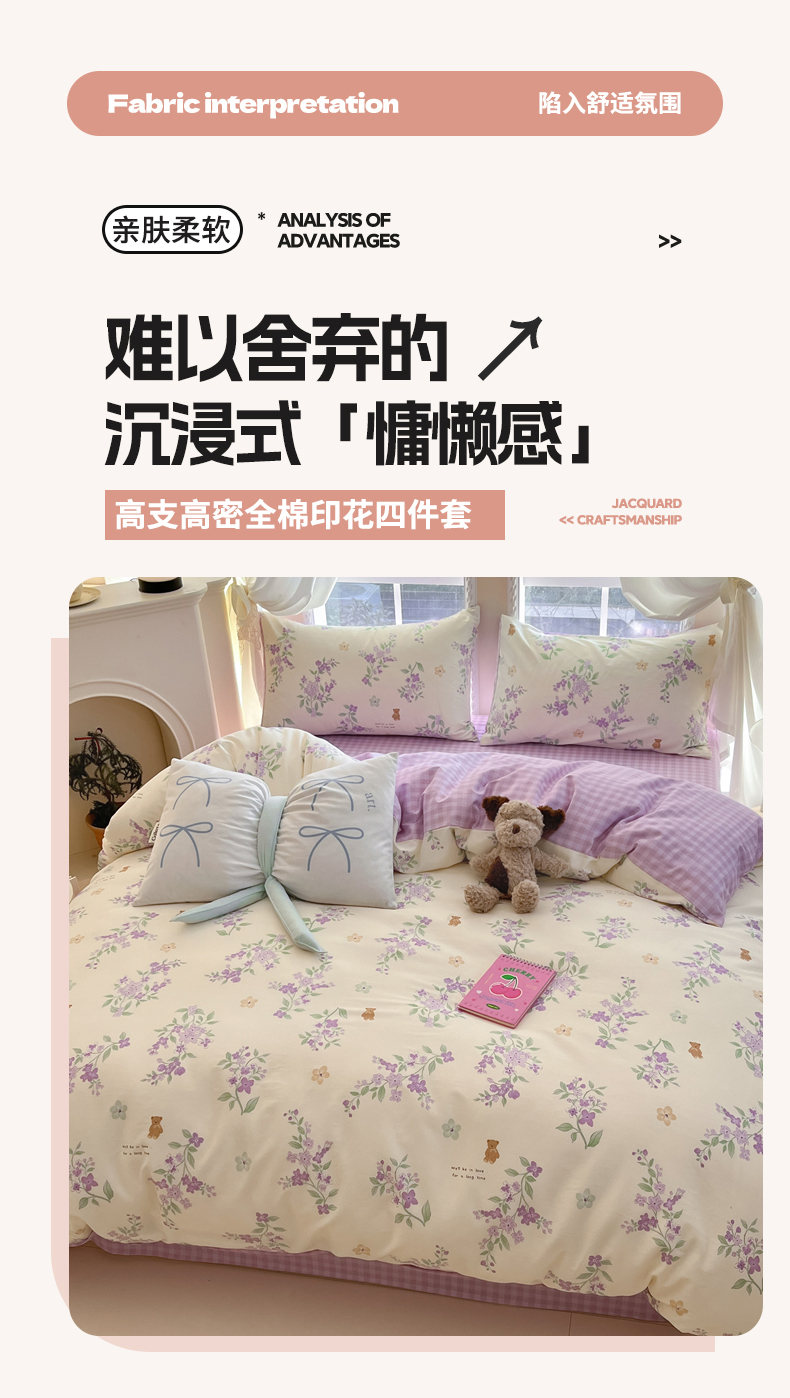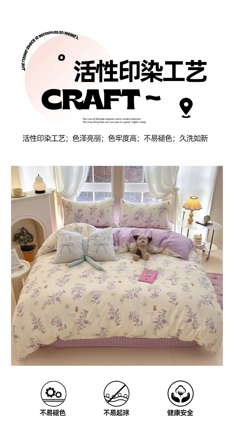 当前位置: 91家纺网 > 商品网购 > 床品套件 > 四件套 > 全棉普通四件套 > Sweet dreams甜梦 2025新款全棉印花卡通小清新四件套 小熊花语