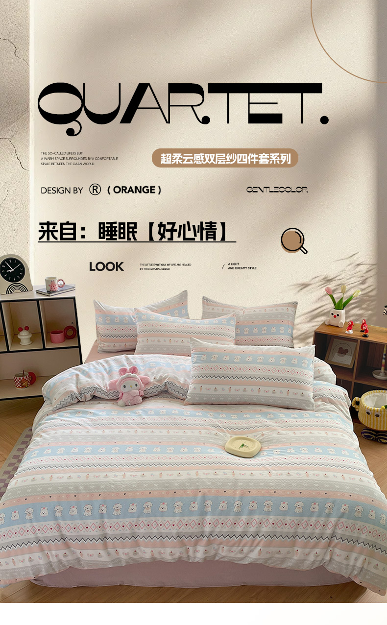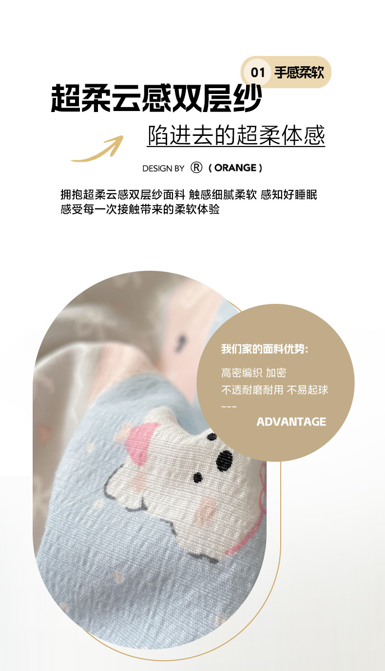 当前位置: 91家纺网 > 商品网购 > 床品套件 > 四件套 > 双层纱四件套 > 优承佳生活馆 2025新款有氧超柔云感双层纱三件套四件套单被套 场景二 梦幻萌宠
