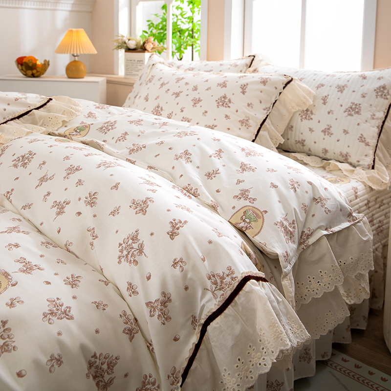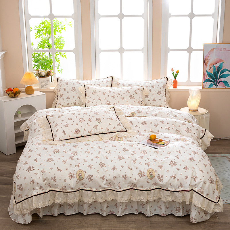 当前位置: 91家纺网 > 商品网购 > 床品套件 > 四件套 > 全棉普通四件套 > 木兰花 2025新款欧式全棉印花韩版花边夹棉床盖床裙款四件套【控价288元起】 卖花的小女孩