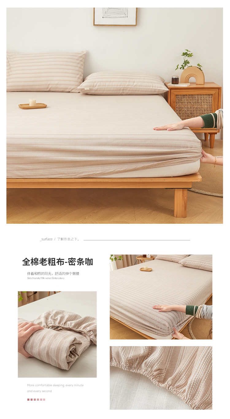 商品名称:慕梵家居 2025新款全棉老粗布床笠系列 全棉老粗布-密条咖