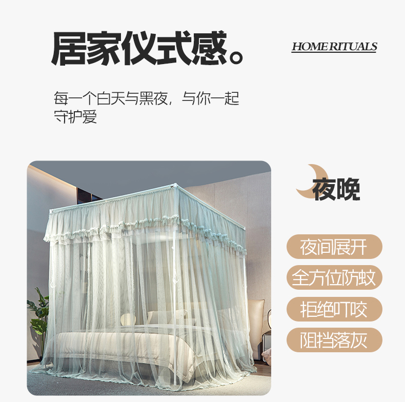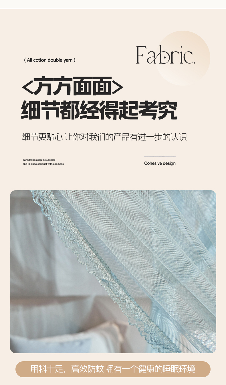(总)夏彩 2025新款浪漫唯美T+U床笠式坐床外穿防摔蚊帐-88610,886610冰海蓝,886610极光白,886610浅粉玉,886610浅水蓝,886610蔷薇粉,886610杏仁黄,886610雅士灰