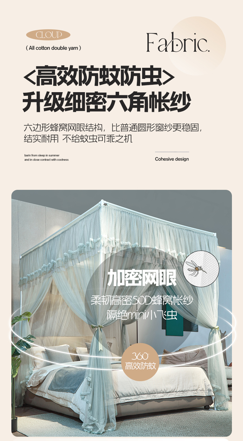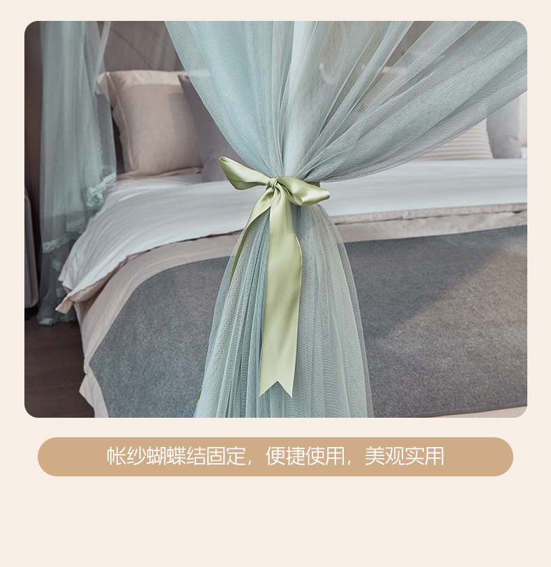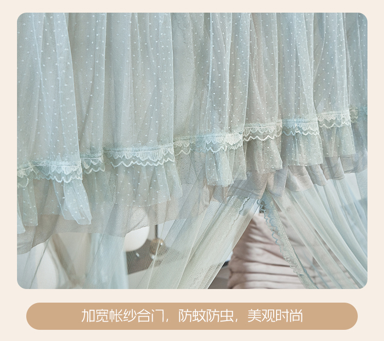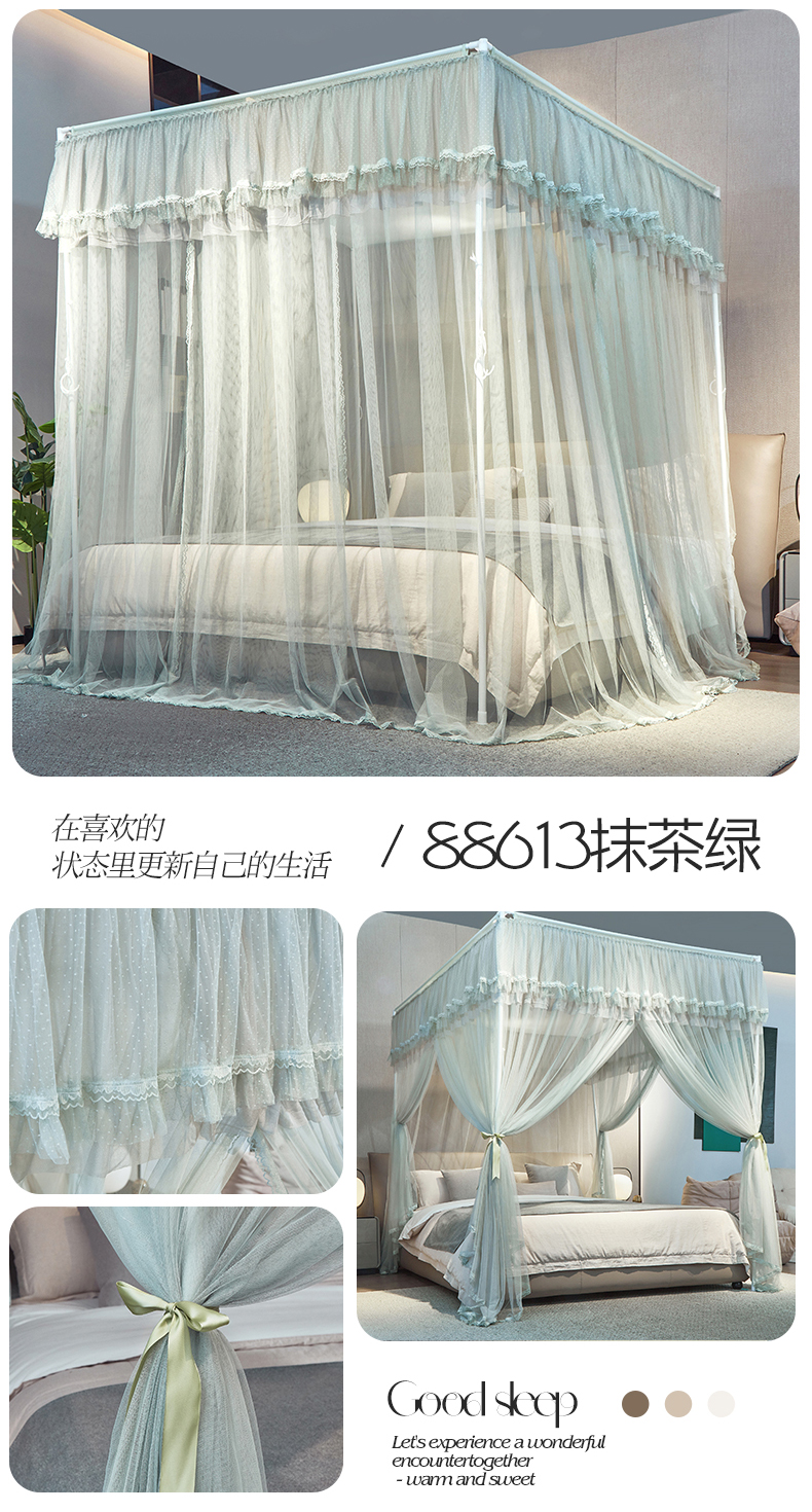 商品名称:夏彩 2025新款蕾丝加柔加密外撑式25烤漆铁艺加粗支架宫廷蚊帐-88613 88613抹茶绿