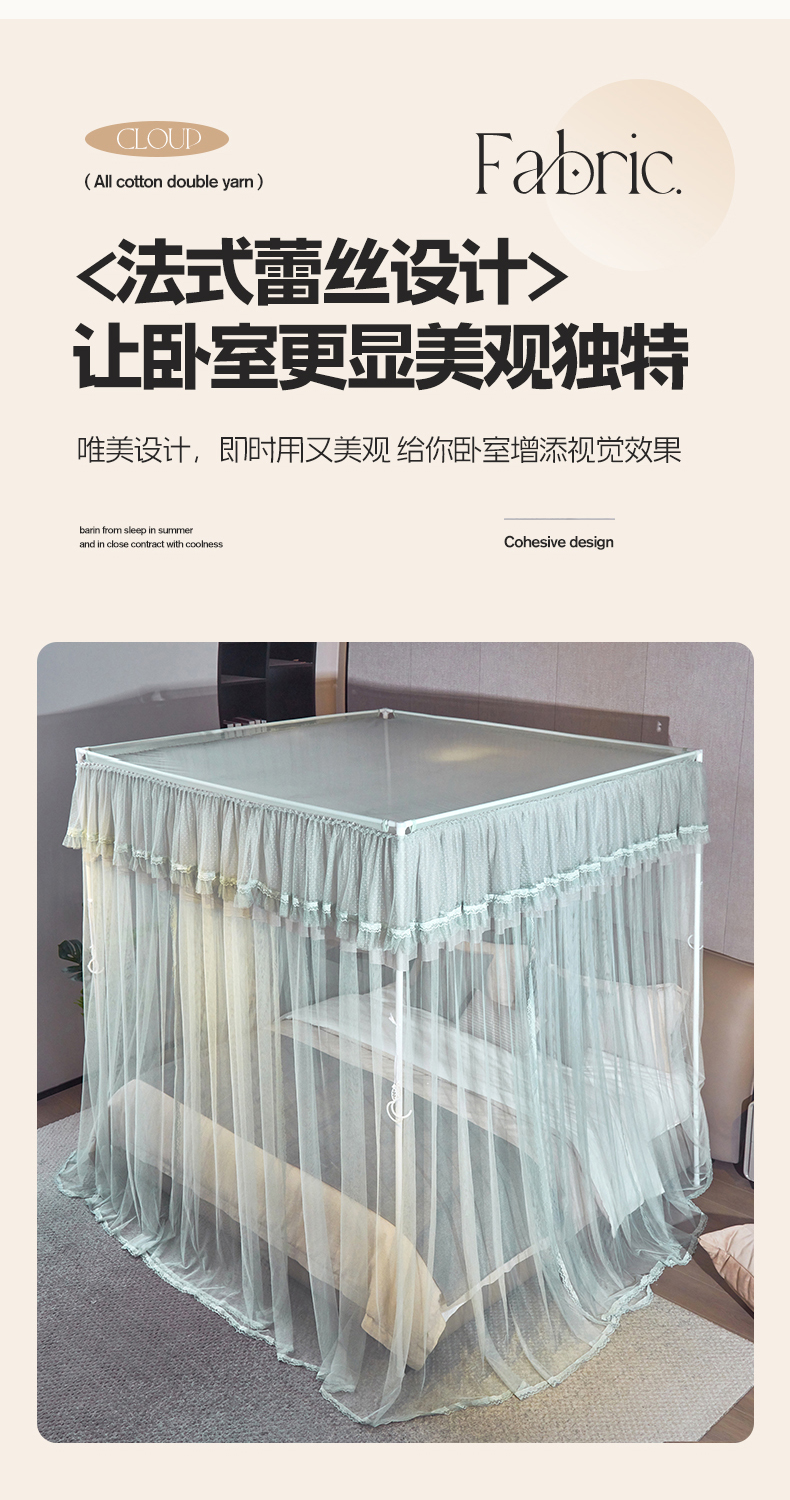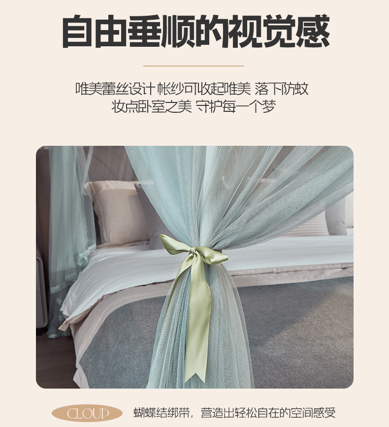 (总)夏彩 2025新款蕾丝U型防摔坐床蚊帐-88630,绿雅灰,藕玉色,香槟色