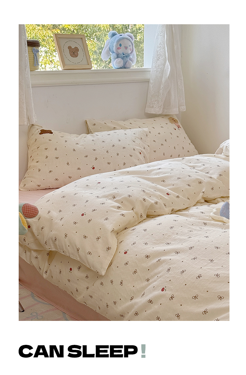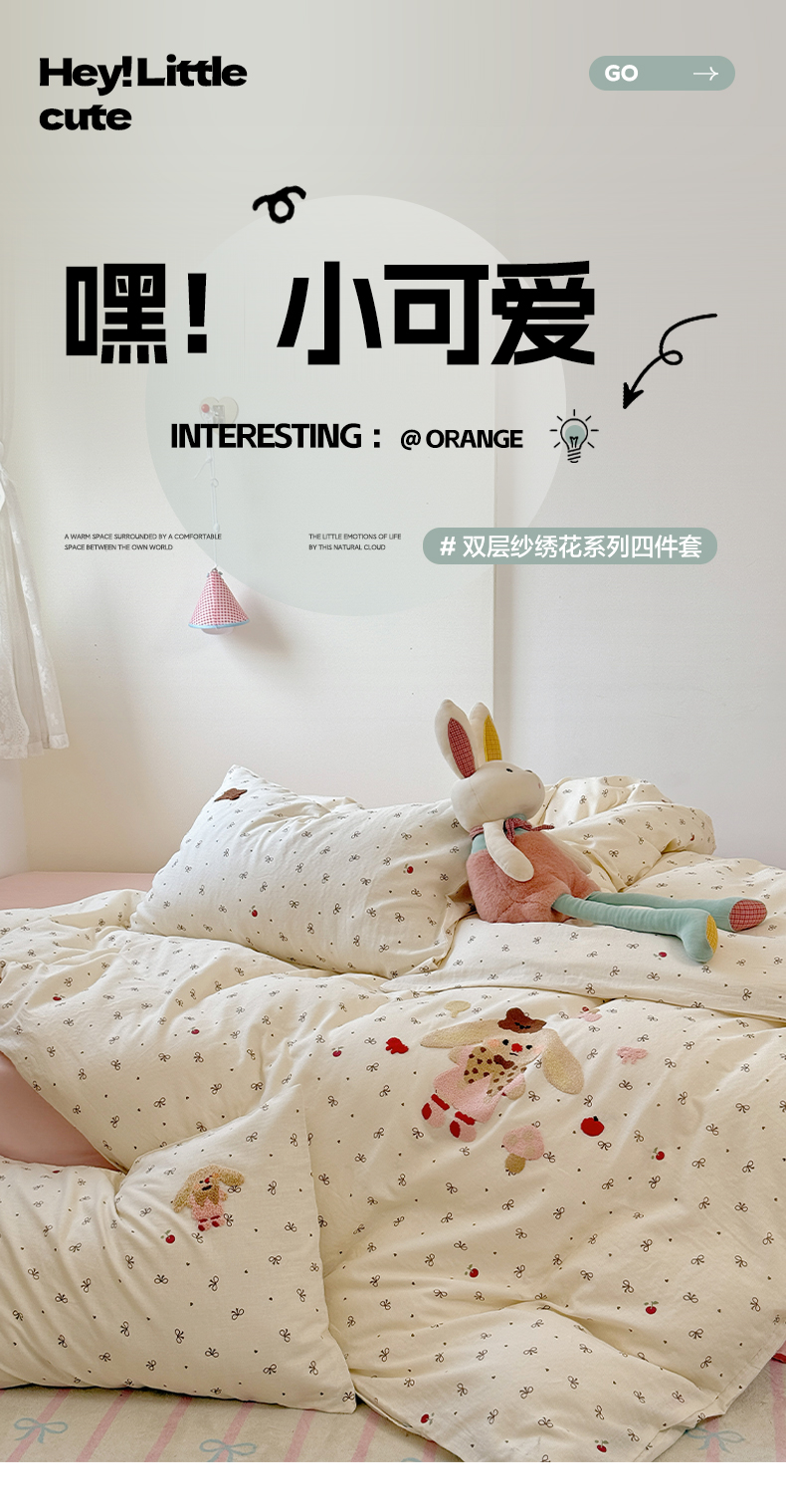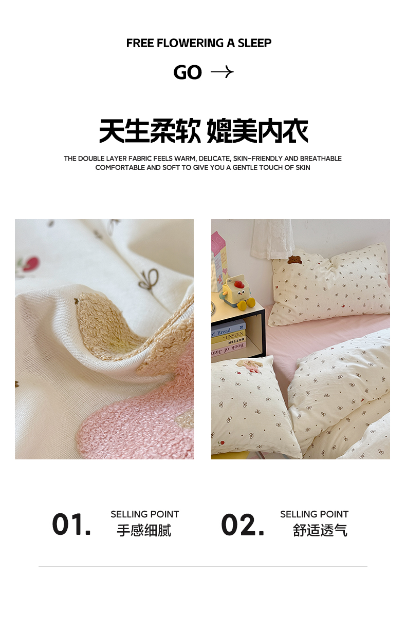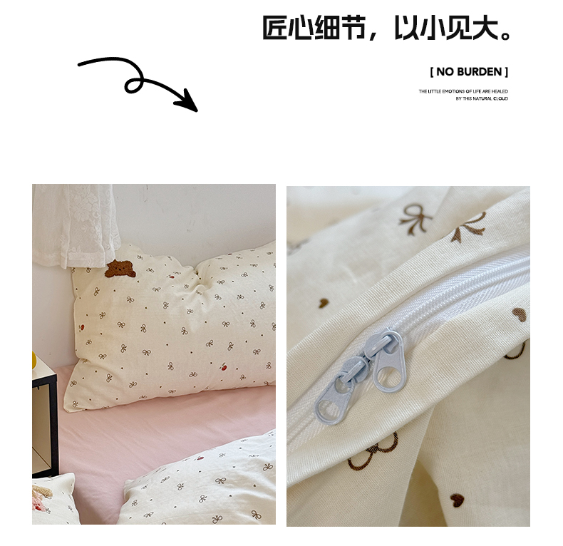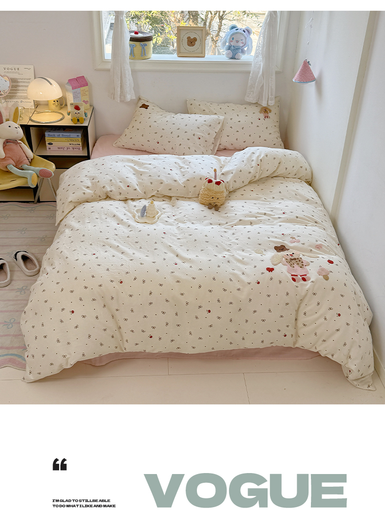商品名称:澳萝拉2025春夏新款全棉纯棉双层纱毛巾绣四件套 樱桃兔