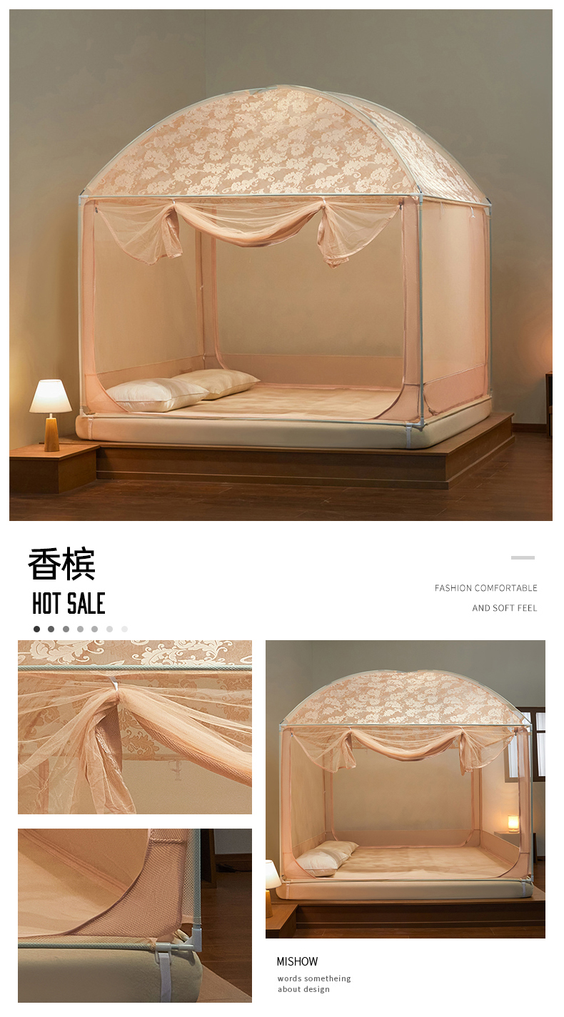 商品名称:飞轮海2025春夏新款坐床式全包蚊帐-MZ-01 香槟