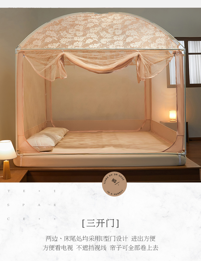(总)飞轮海蚊帐 2023新款三开门落地遮光蚊帐-L-93,高级灰,芥末绿,奶油黄,香槟