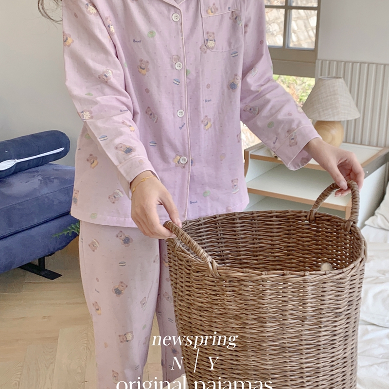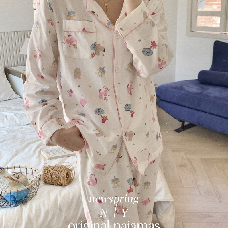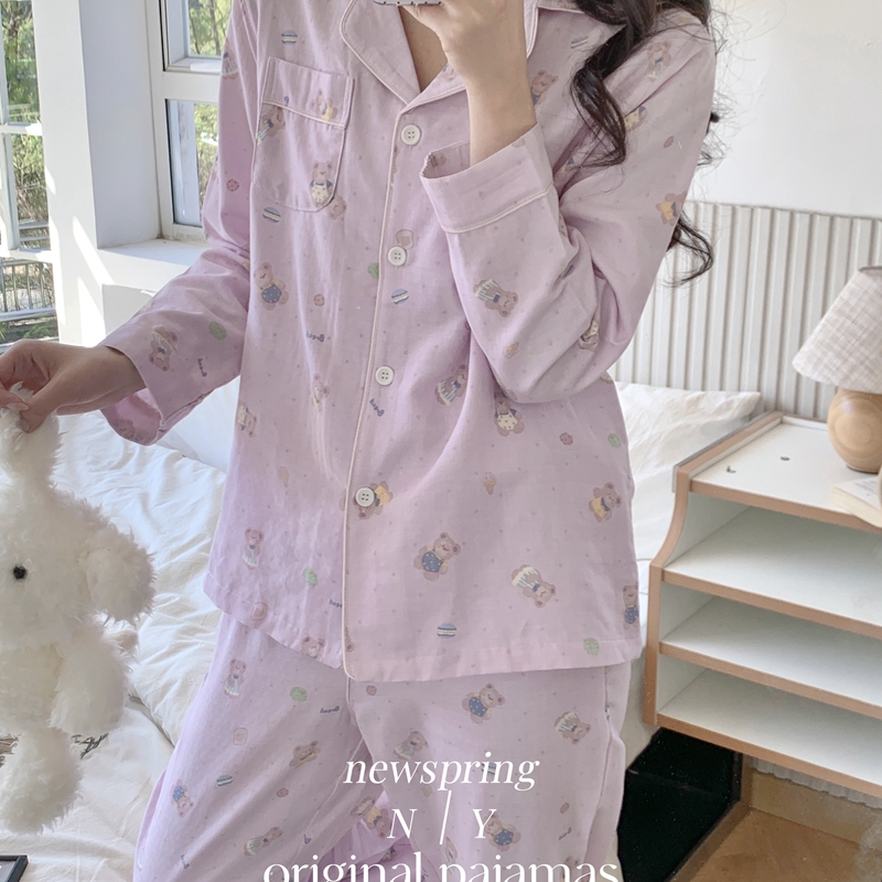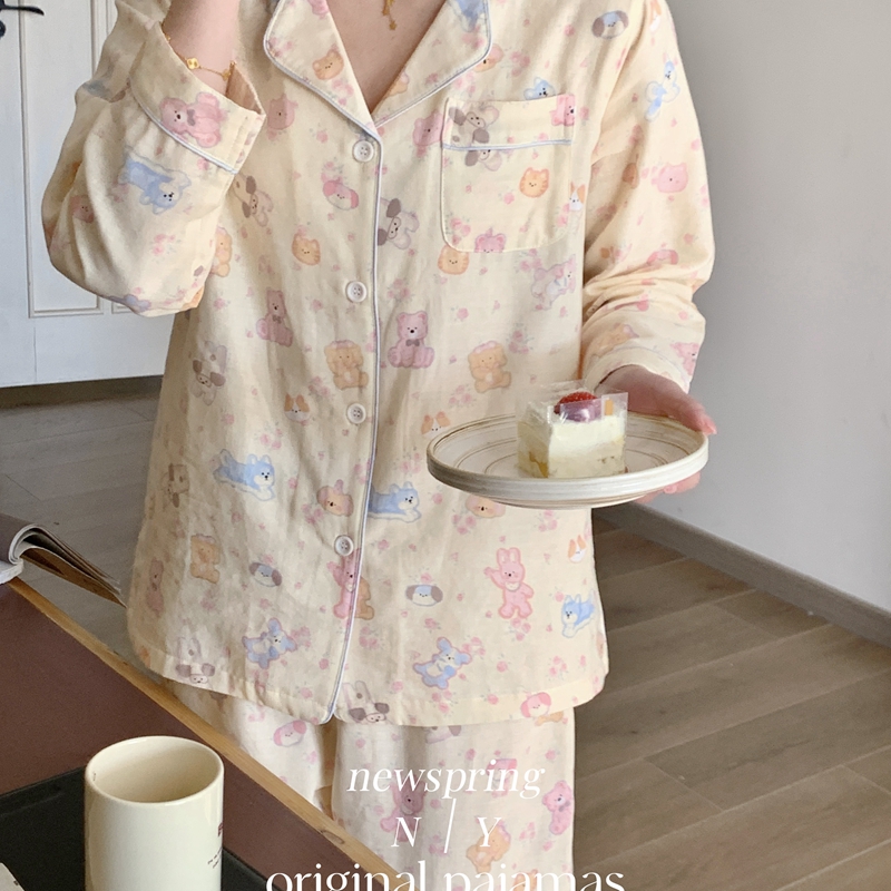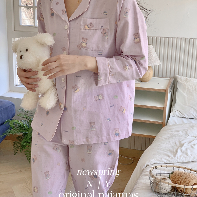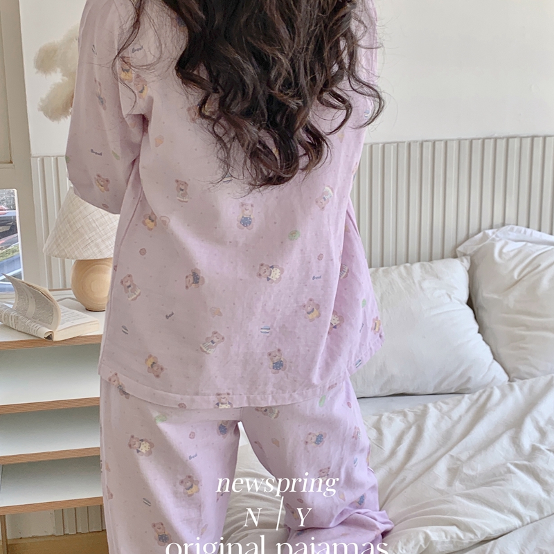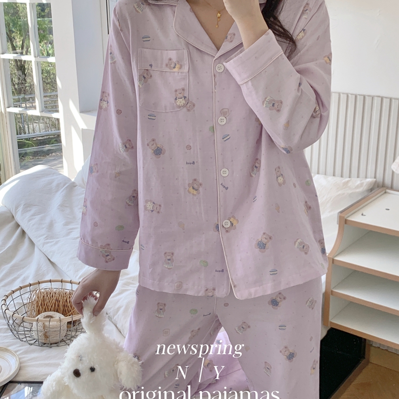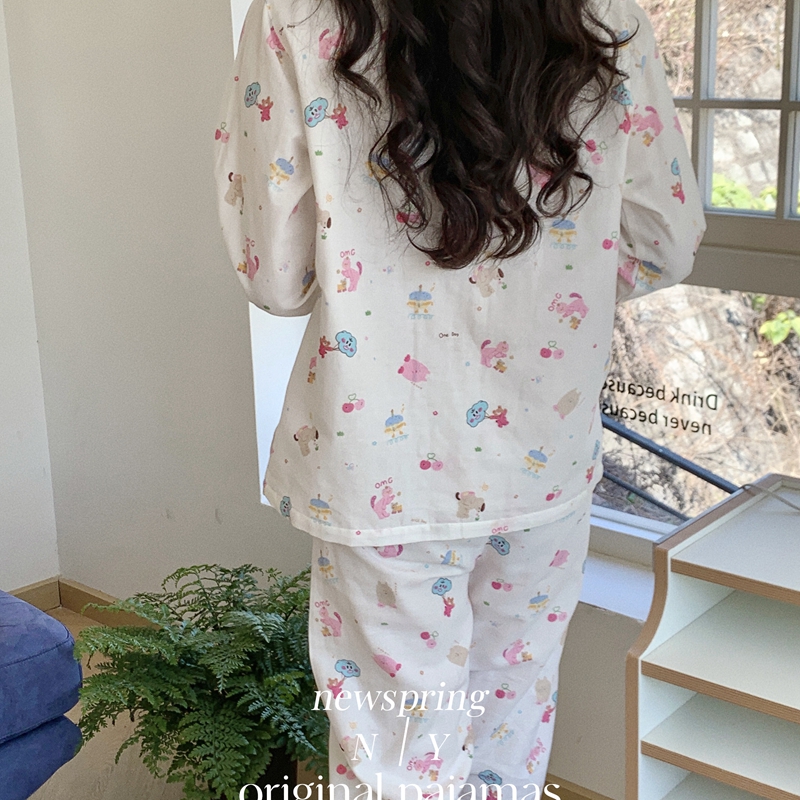 (总)纽约生活 2025新款绉布圆领开扣长袖长裤(会员-5),波比熊,黑碎花猫咪,蝴蝶结粉熊,花花狗,蓝碎花,塞纳花房