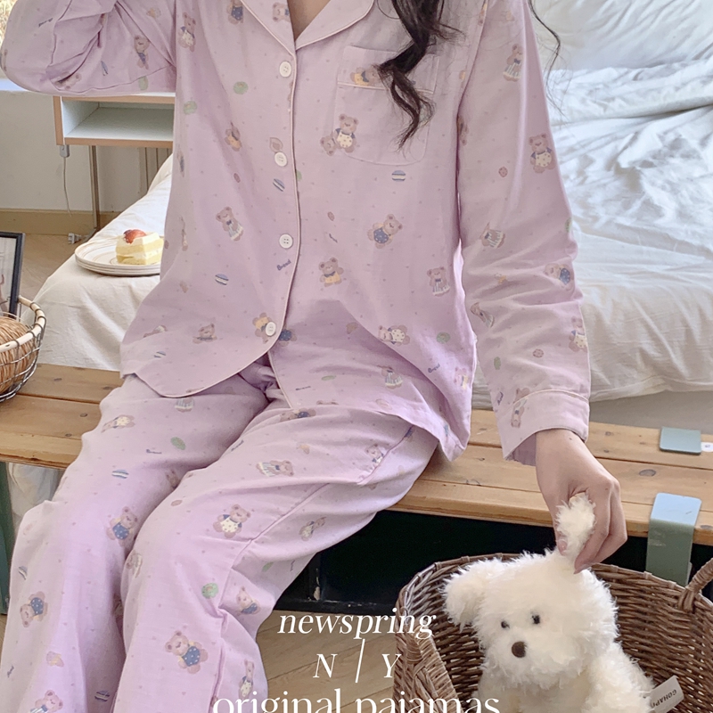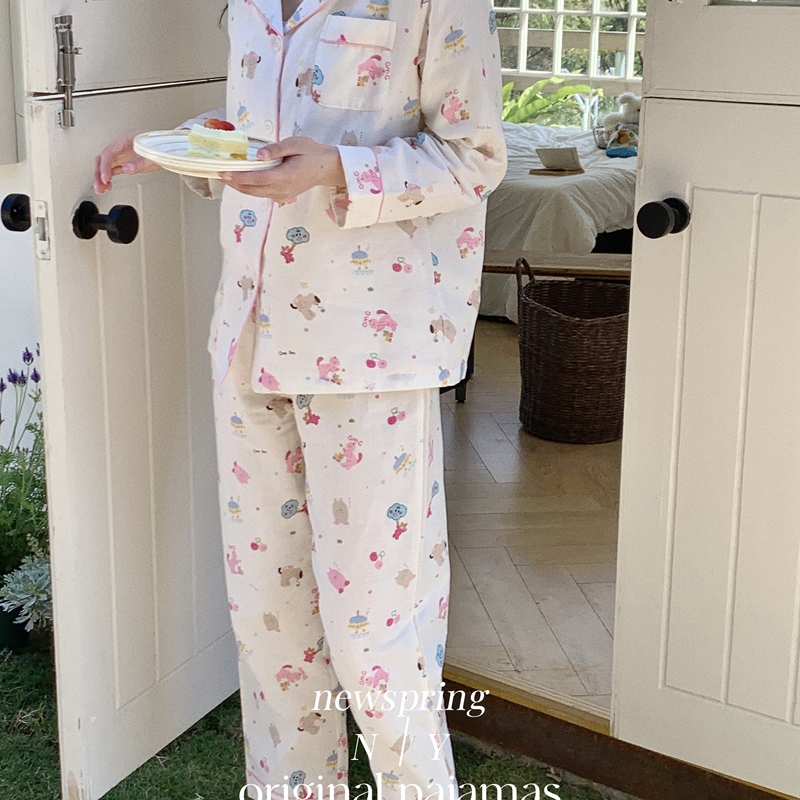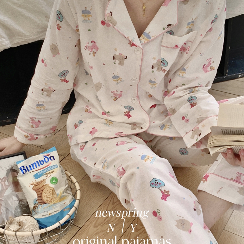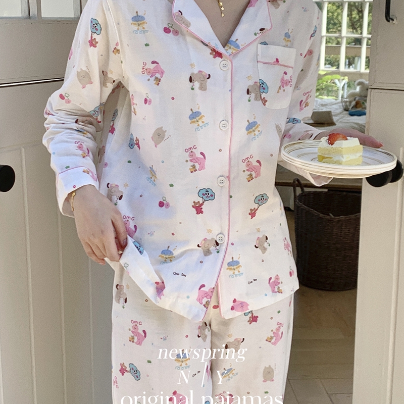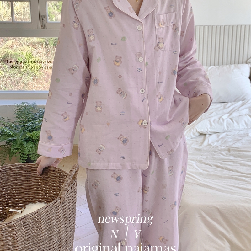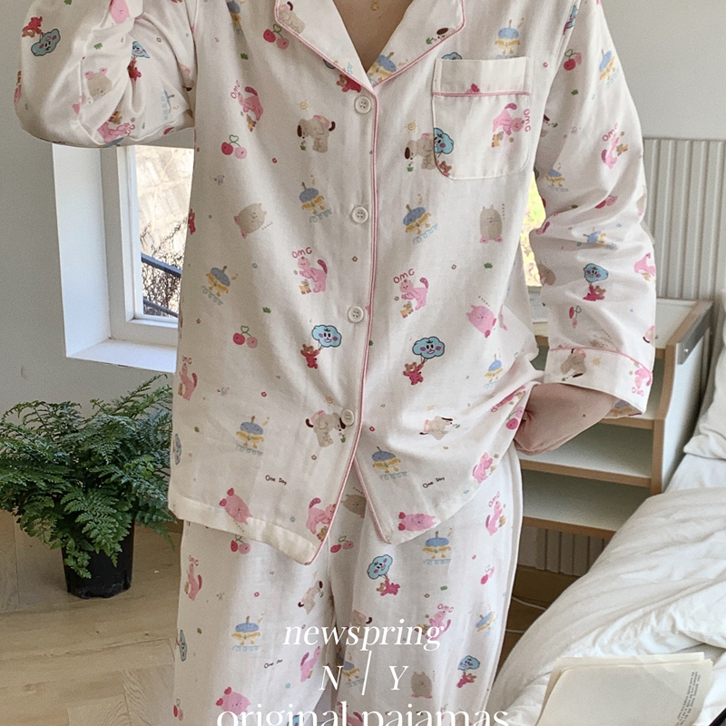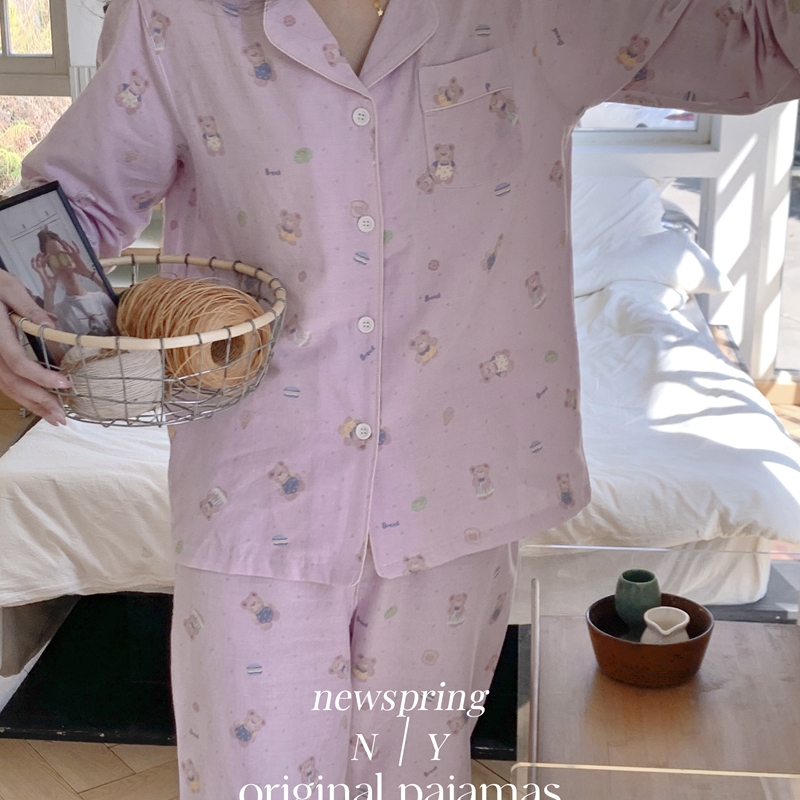 (总)纽约生活 2025新款绉布圆领开扣长袖长裤(会员-5),波比熊,黑碎花猫咪,蝴蝶结粉熊,花花狗,蓝碎花,塞纳花房