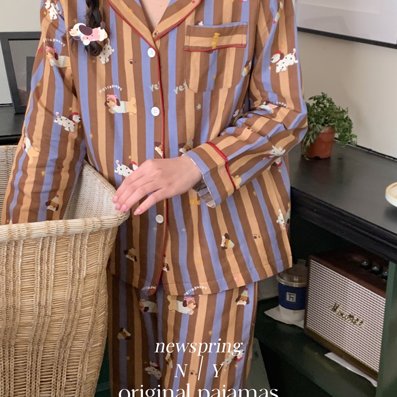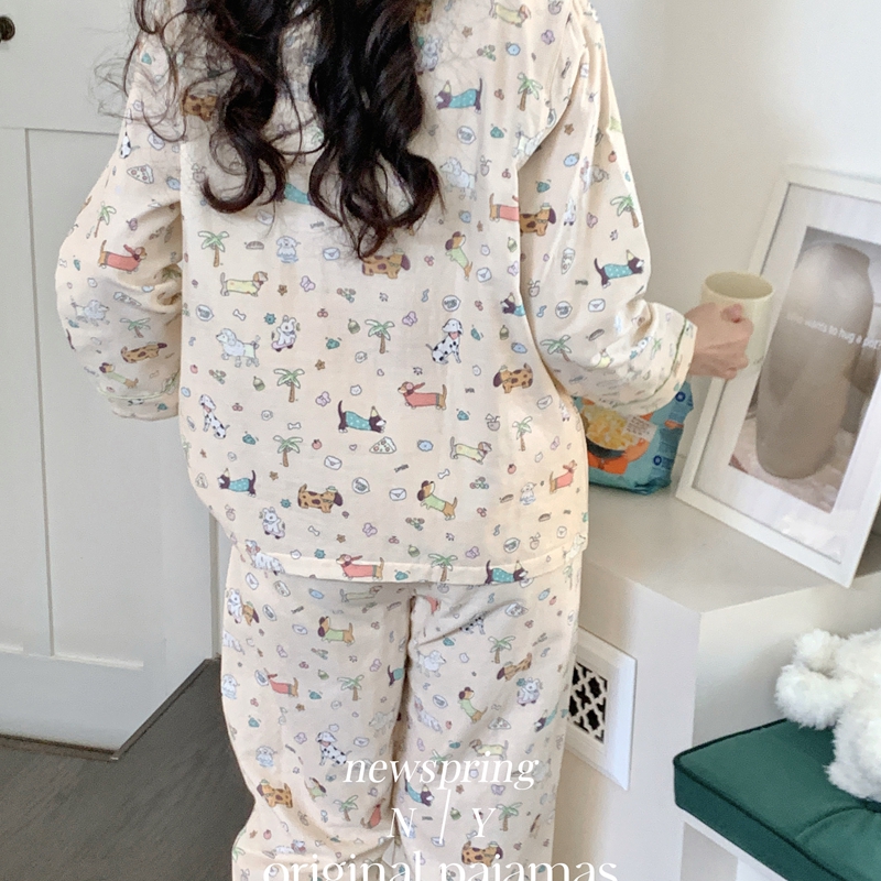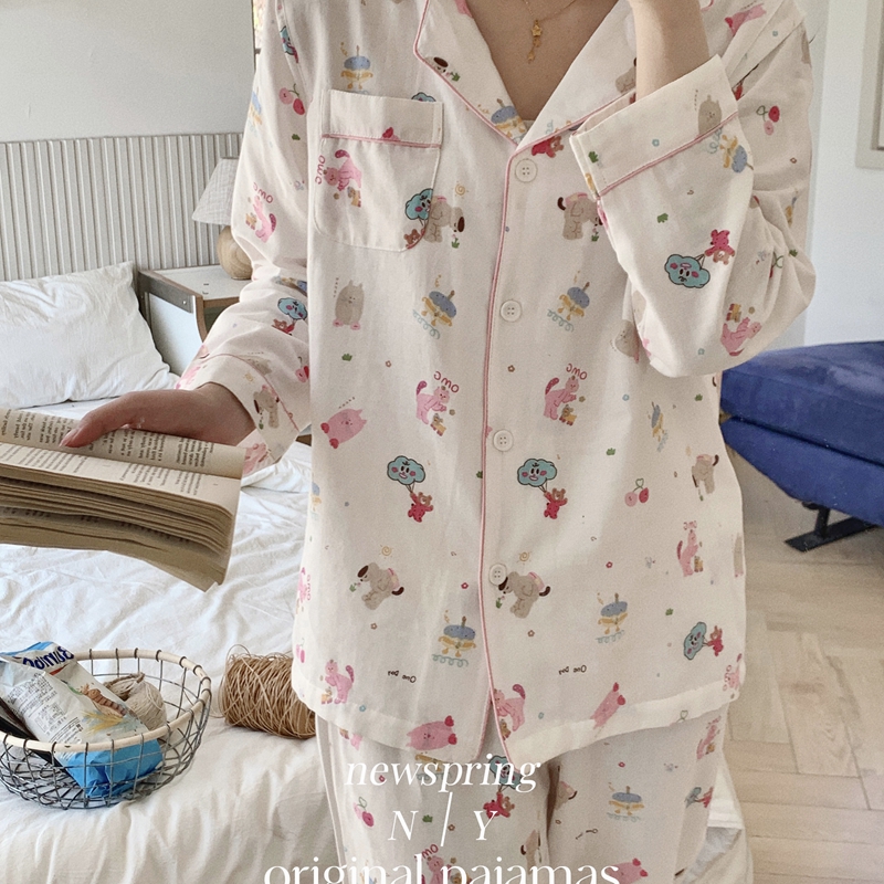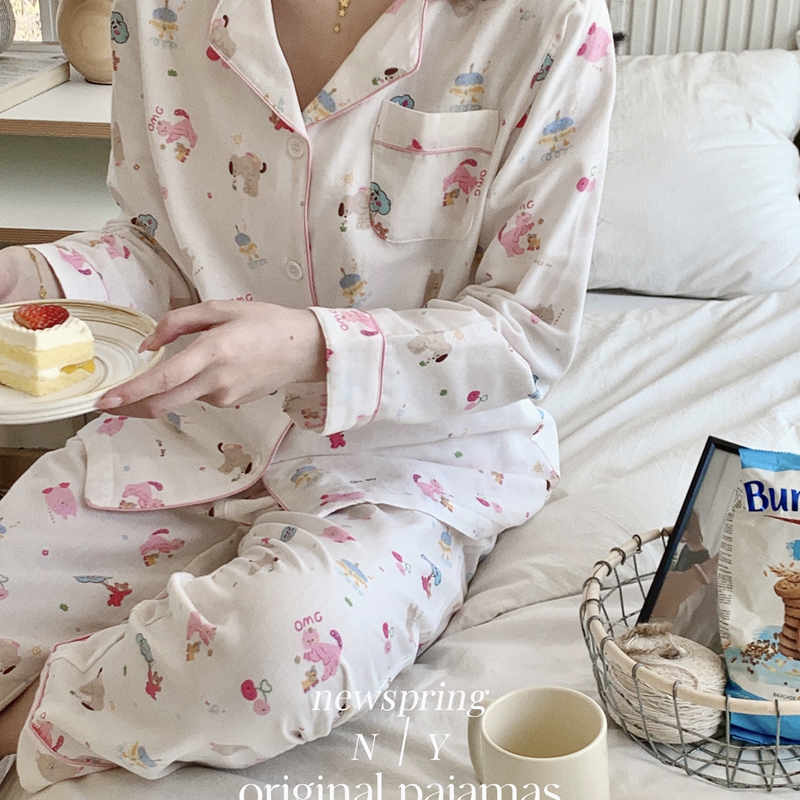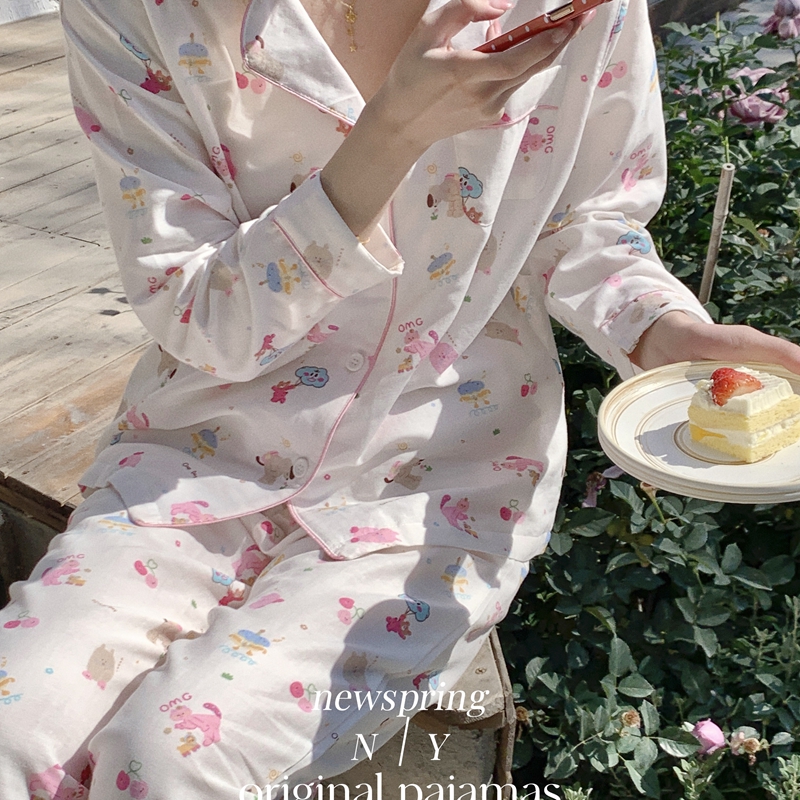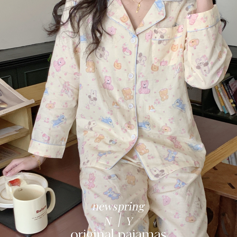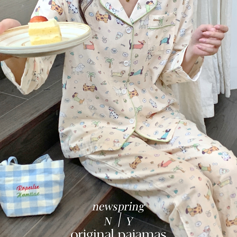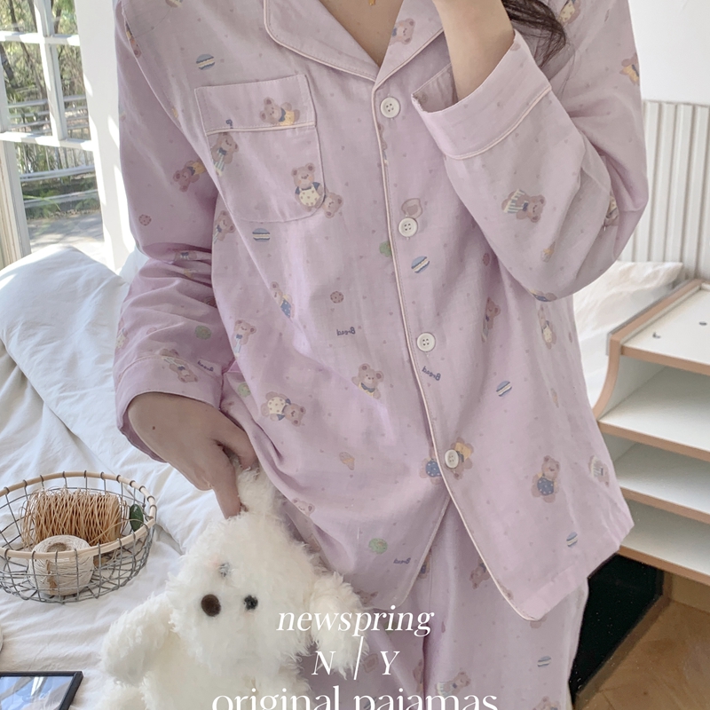 (总)纽约生活 2025新款绉布圆领开扣长袖长裤(会员-5),波比熊,黑碎花猫咪,蝴蝶结粉熊,花花狗,蓝碎花,塞纳花房