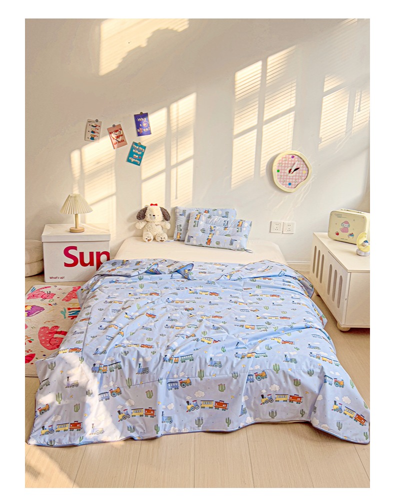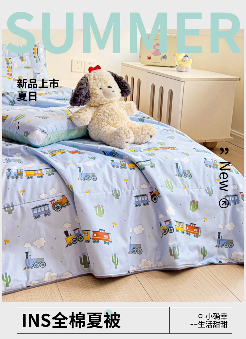 商品名称:十九色 2025新款全棉13372ins儿童夏被 小火车