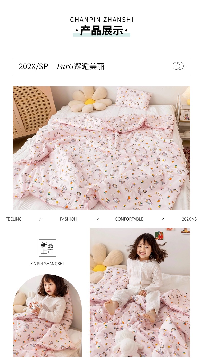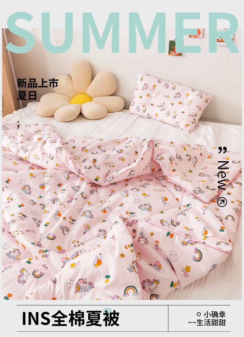 商品名称:十九色 2025新款全棉13372ins儿童夏被 彩虹小马