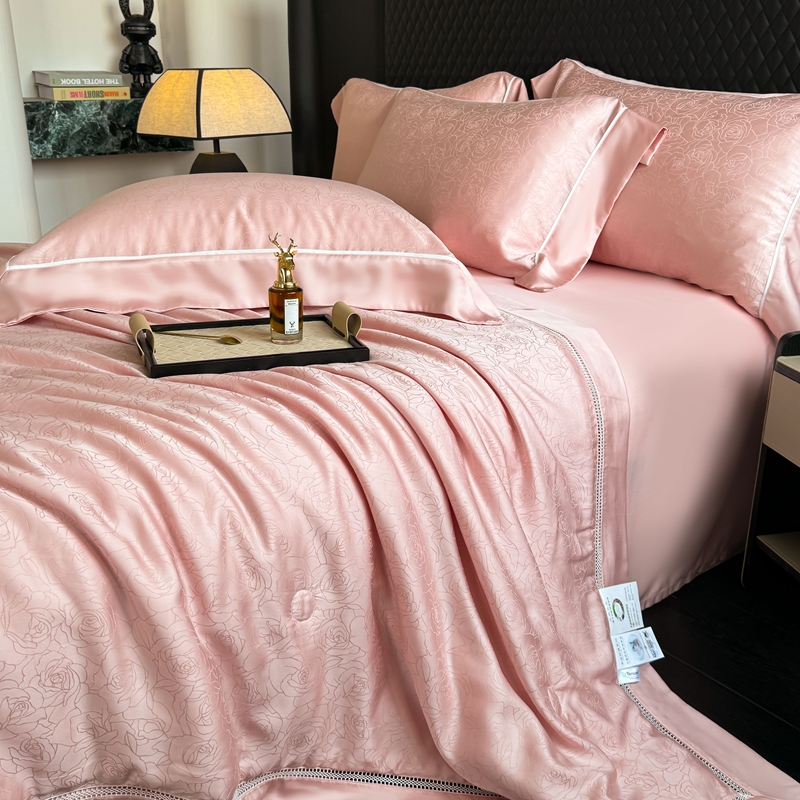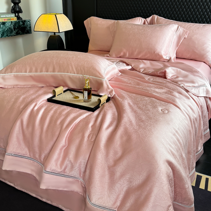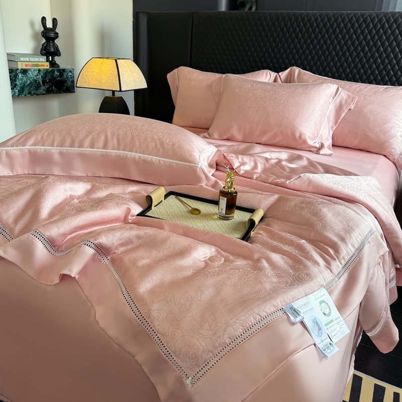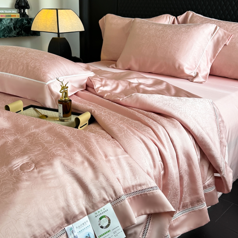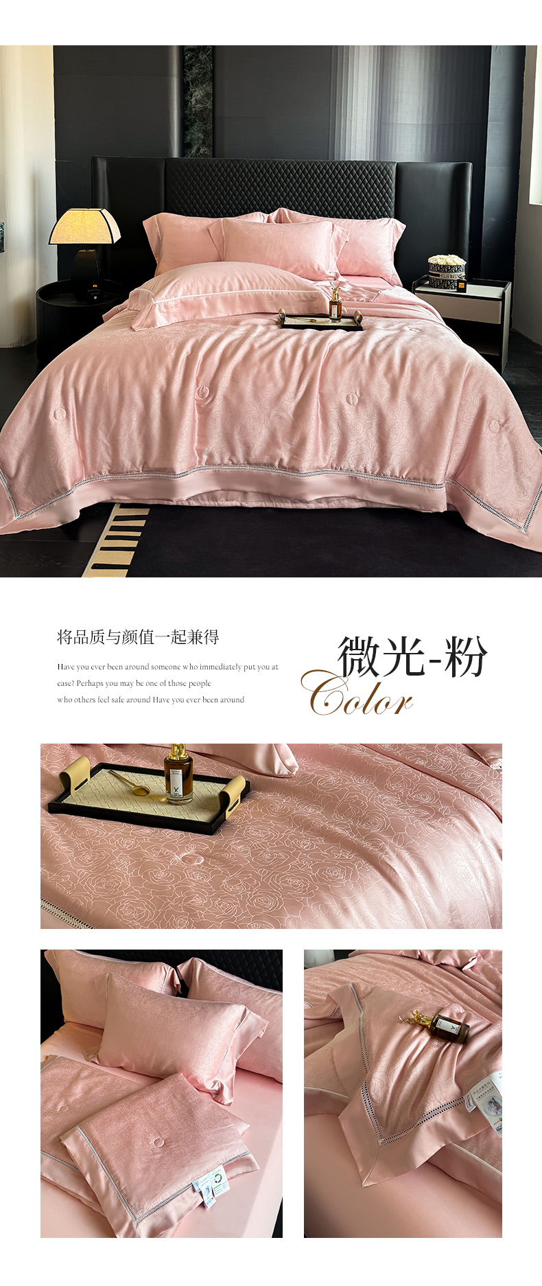 娇逸2025新款60s兰精天丝提花镂空夏被四件套 微光-粉