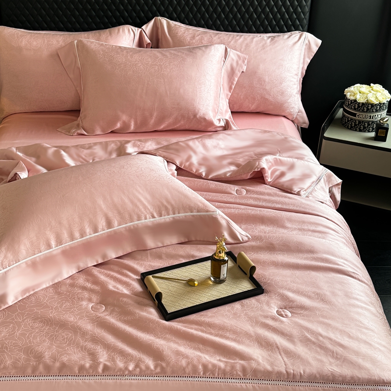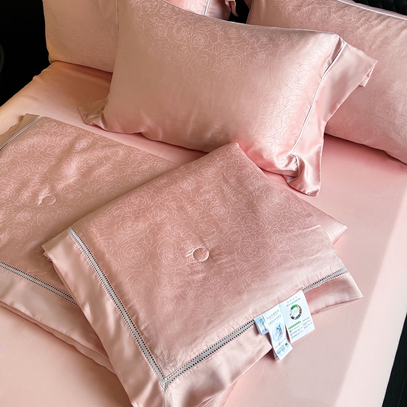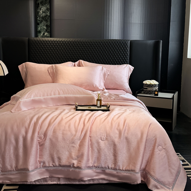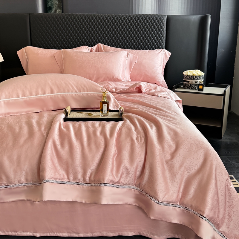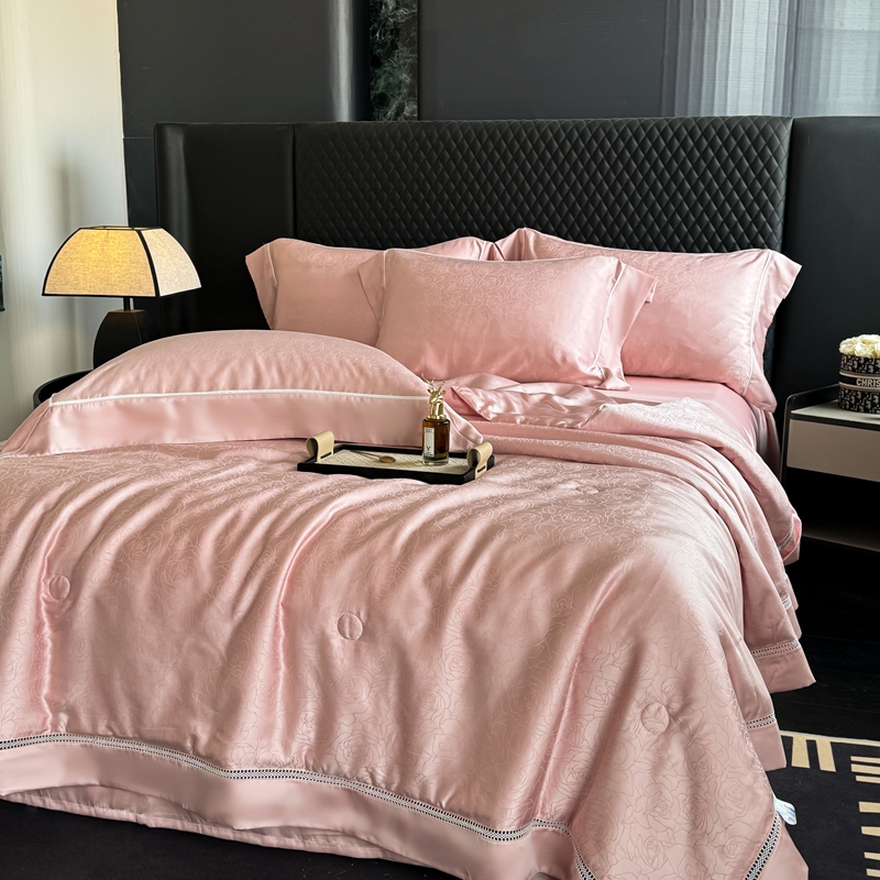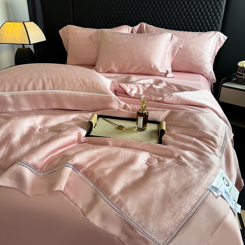 娇逸2025新款60s兰精天丝提花镂空夏被四件套 微光-粉