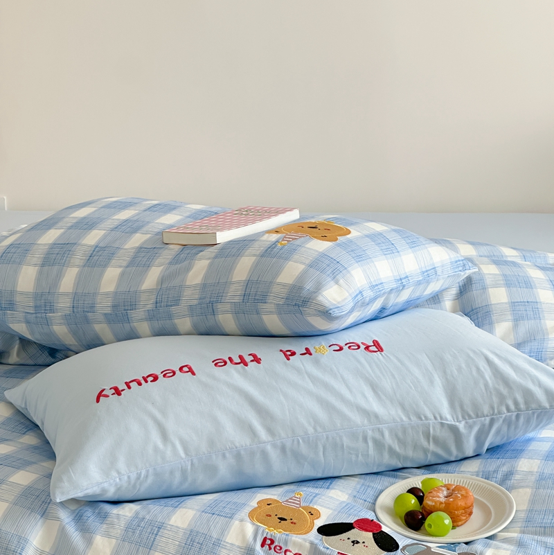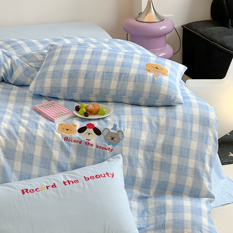 (总)觅糖家纺 2025新款全棉磨毛原创毛巾绣系列四件套,豹纹小猫,蜡笔小熊,快乐小狗,粉格子小猫,蓝格西高地,粉红小猫,腊肠狗狗,欢乐小熊,围脖小狗