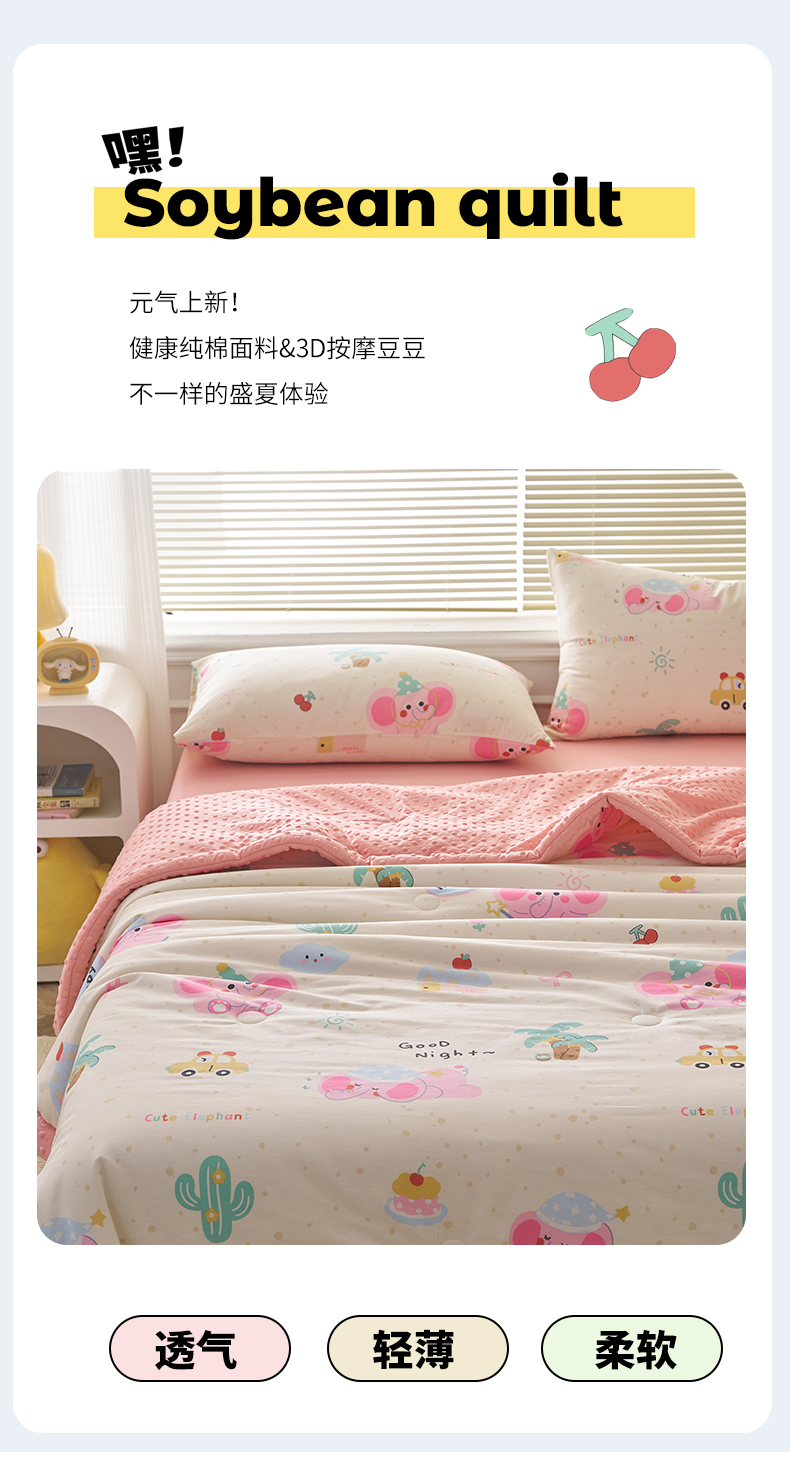 商品名称:暖阳 2025年新款纯棉豆豆夏被夏凉被被子被芯 豆豆-悠闲小象