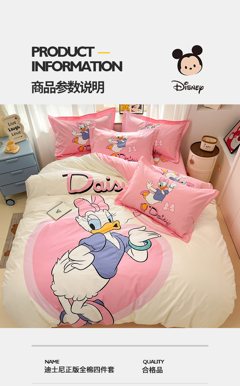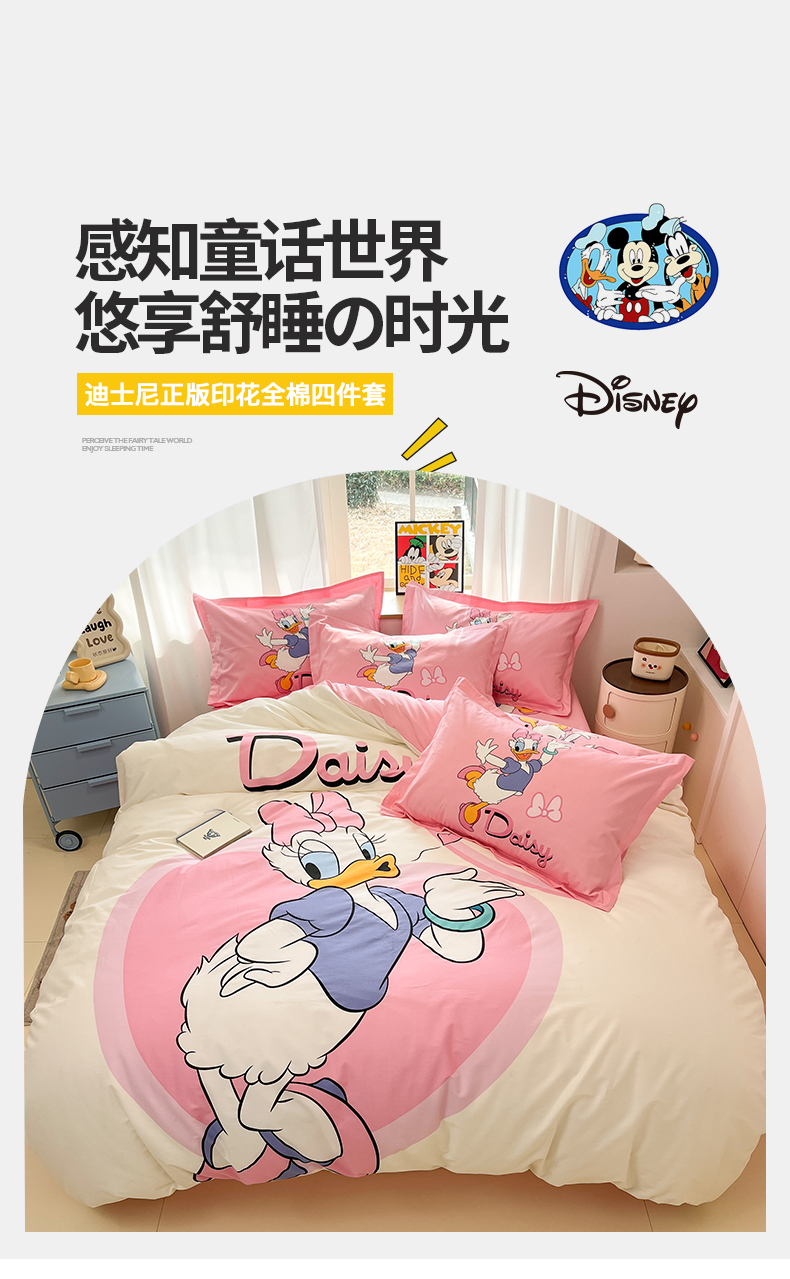 当前位置: 91家纺网 > 商品网购 > 床品套件 > 四件套 > 全棉普通四件套 > 典曼家纺 2025新款迪士尼大版印花卡通四件套 甜心黛西