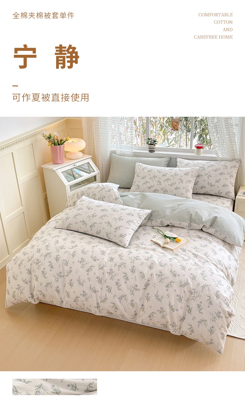 商品名称:元元被芯 2025新款40支13372全棉印花全棉隐藏式夹棉被套 悠然