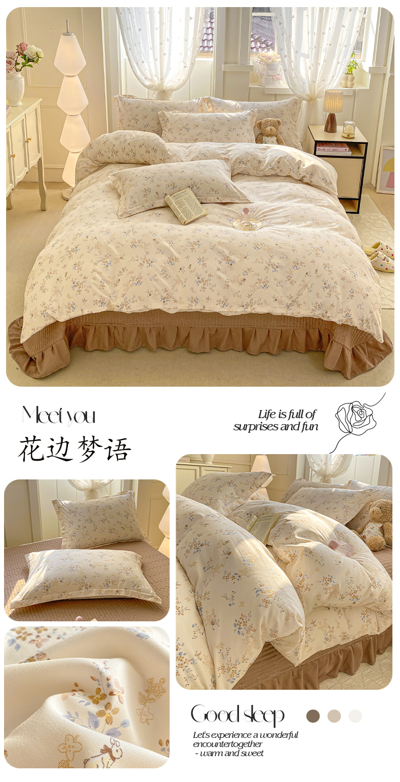 (总)梦莱斯 2025新款高克重云感棉四件套-花边款,赫拉,花盖绿,花盏灰,罗逸维绿,梦想熊,秋日记忆粉,若梦红,庭院春深,樱桃季,星星狗,灰调花笺,浅褐疏影,柔紫花绪,紫雾漫花