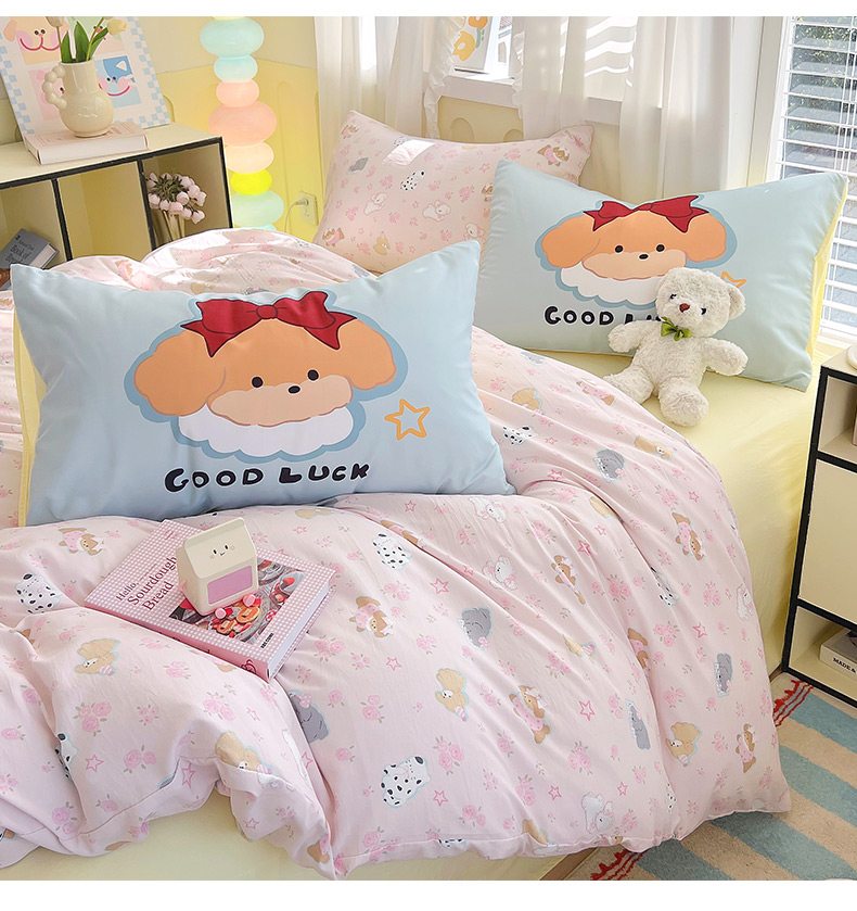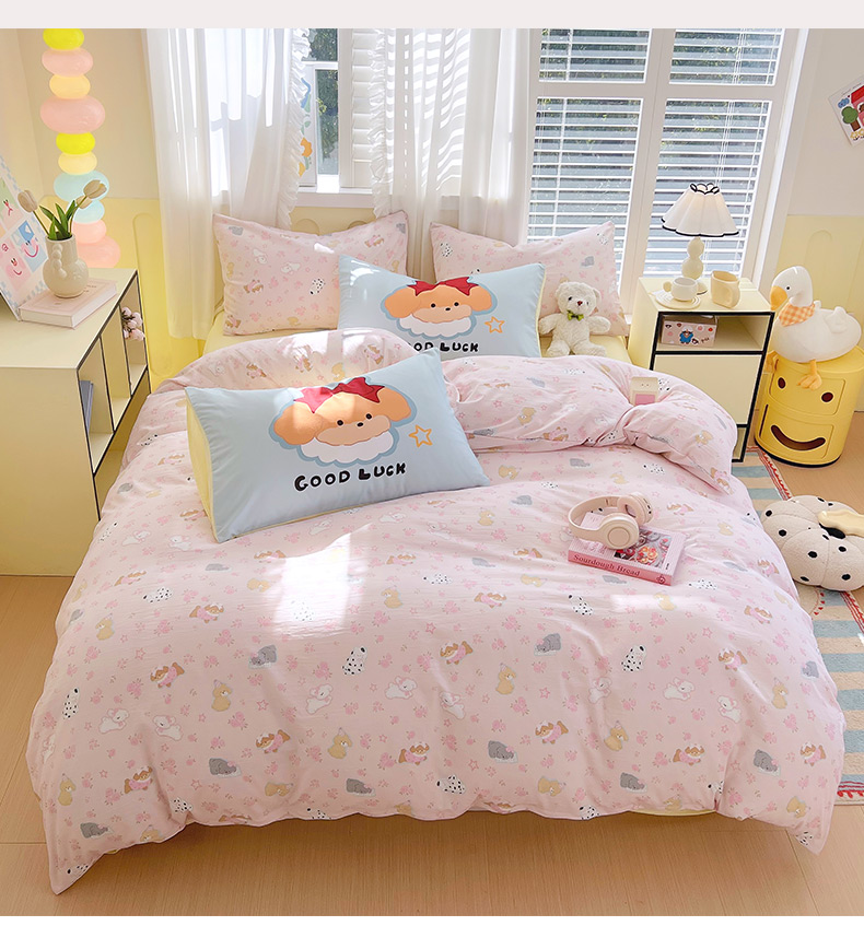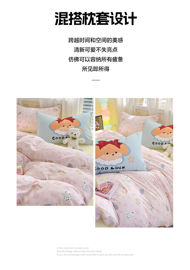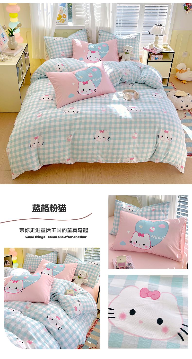 大麦乐田2025新款超柔大版印花四件套 蓝格粉猫
