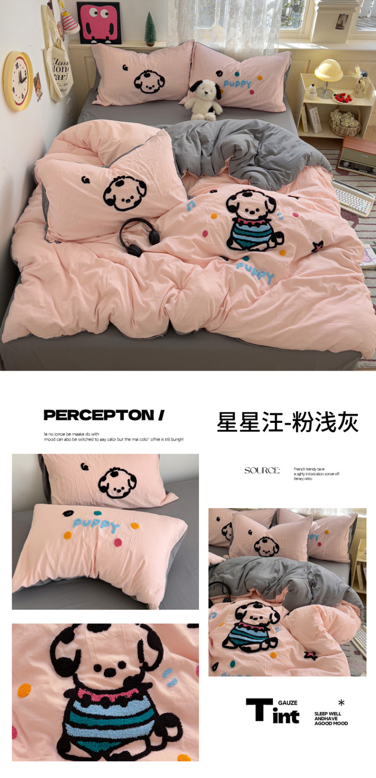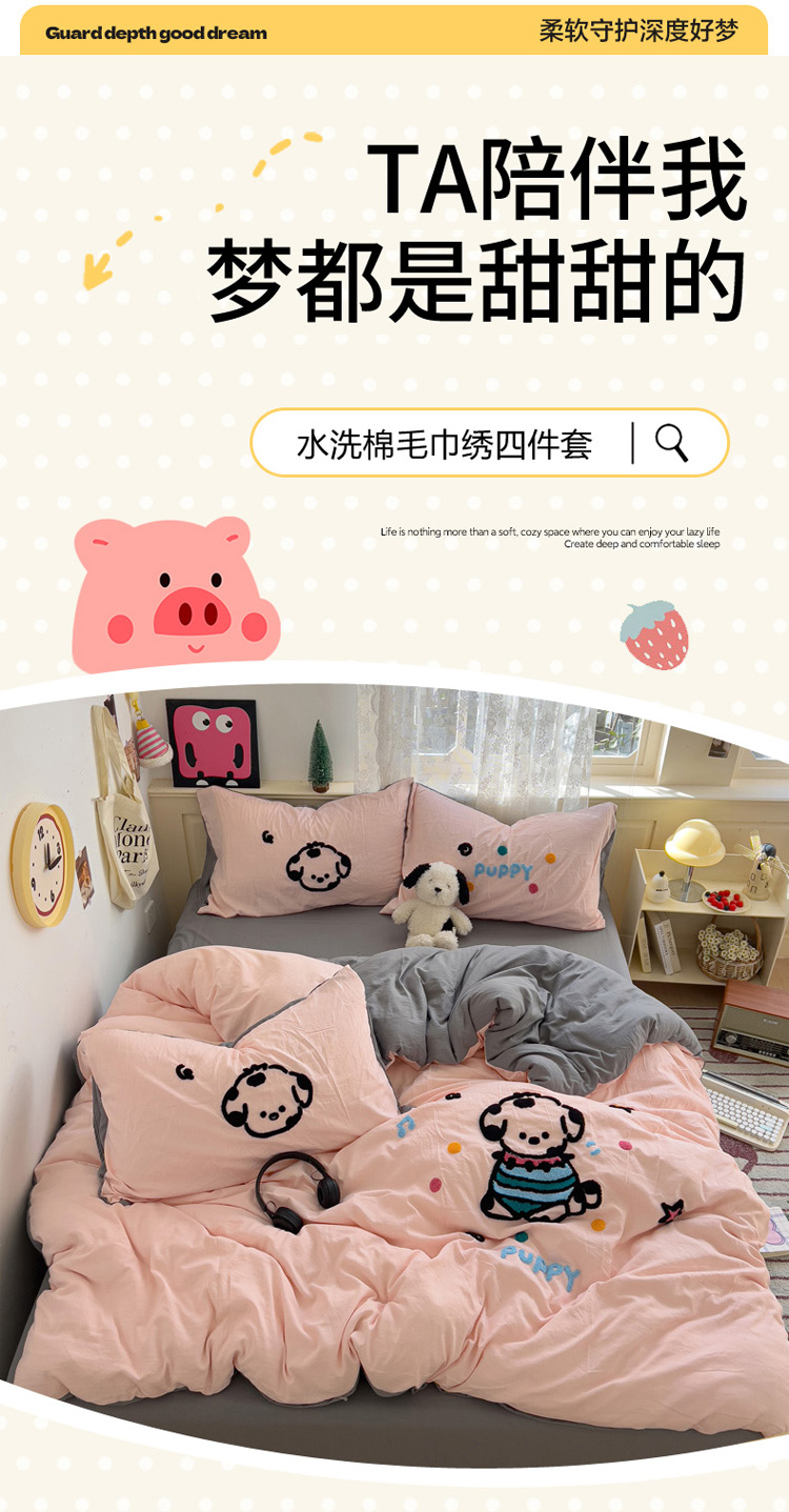 当前位置: 91家纺网 > 商品网购 > 床品套件 > 四件套 > 毛巾绣四件套 > 花伞家居 2025新款精灵水洗棉毛巾绣四件套含买家秀 星星汪-粉浅灰
