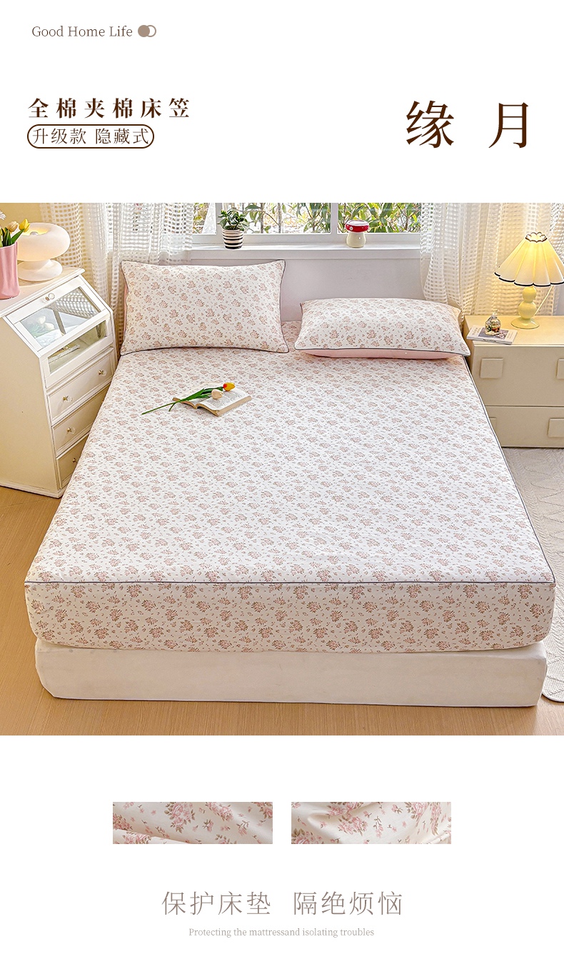 商品名称:元元被芯 2025新款40支13372全棉印花全棉隐藏式夹棉床笠 悦影