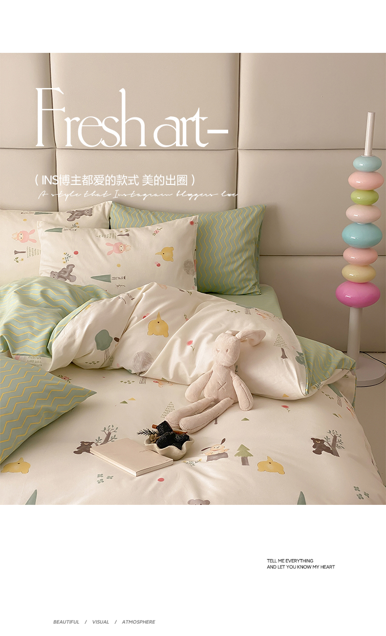 慕希家纺 2025新款全棉13372印花四件套 秘森茶话会