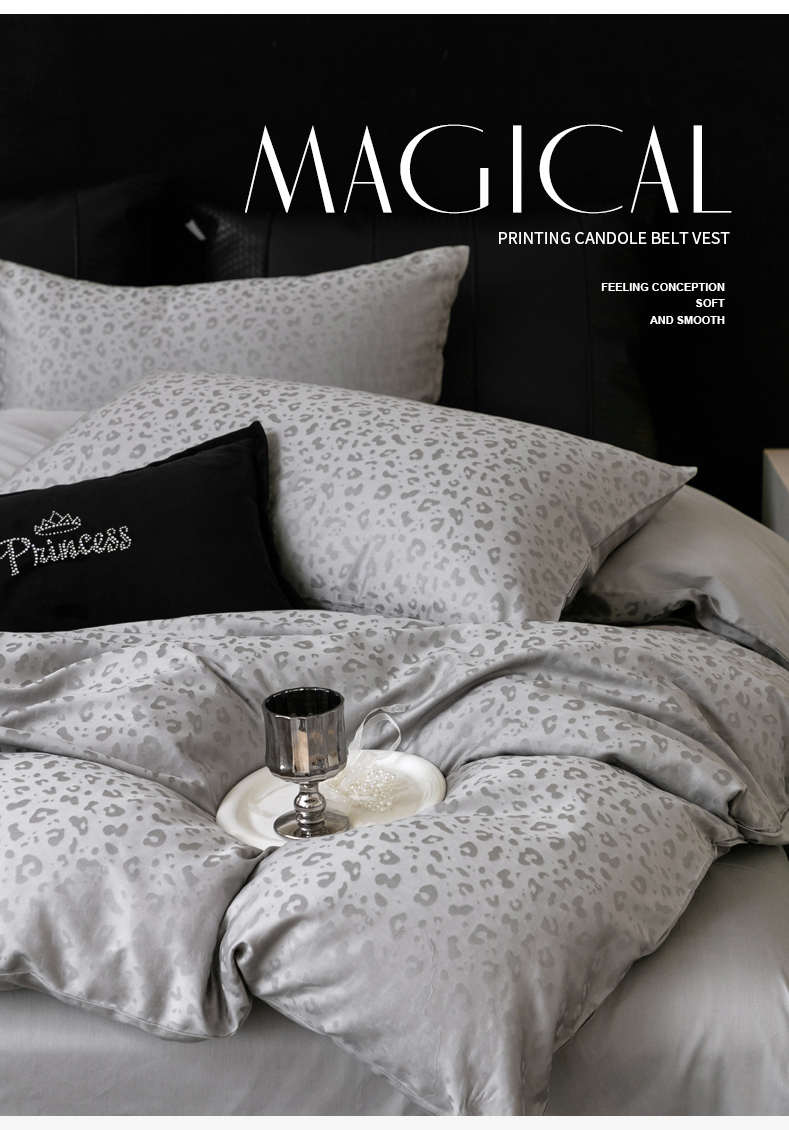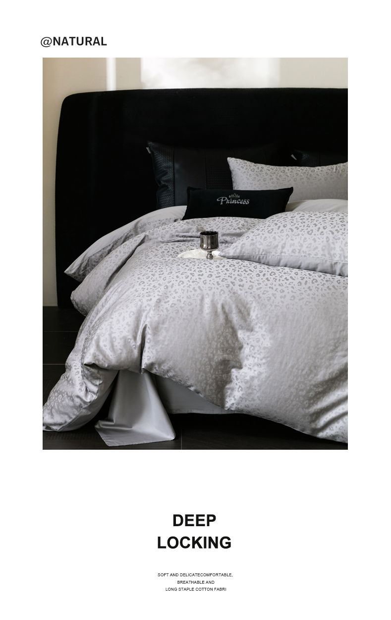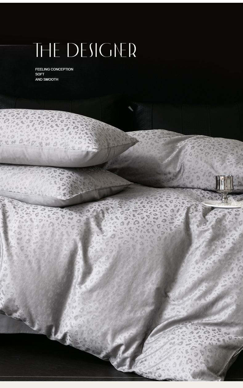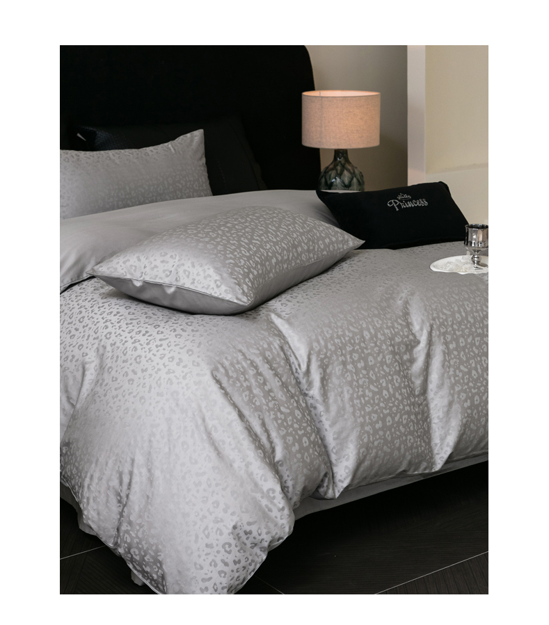 商品名称:立奥被业 2025新款60支全棉贡缎提花四件套 豹纹灰