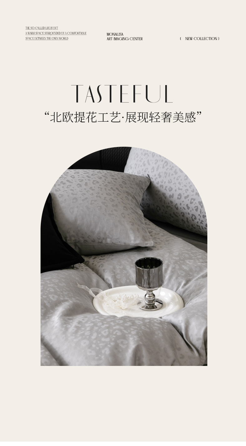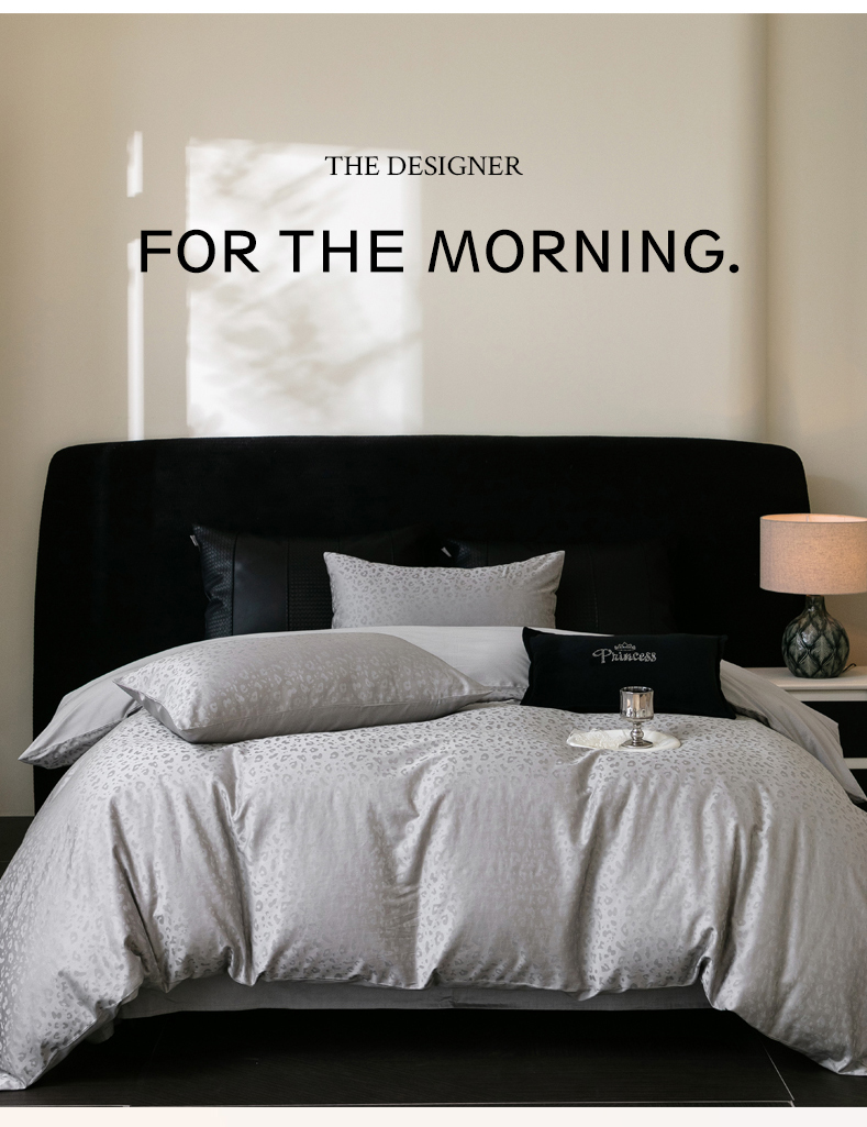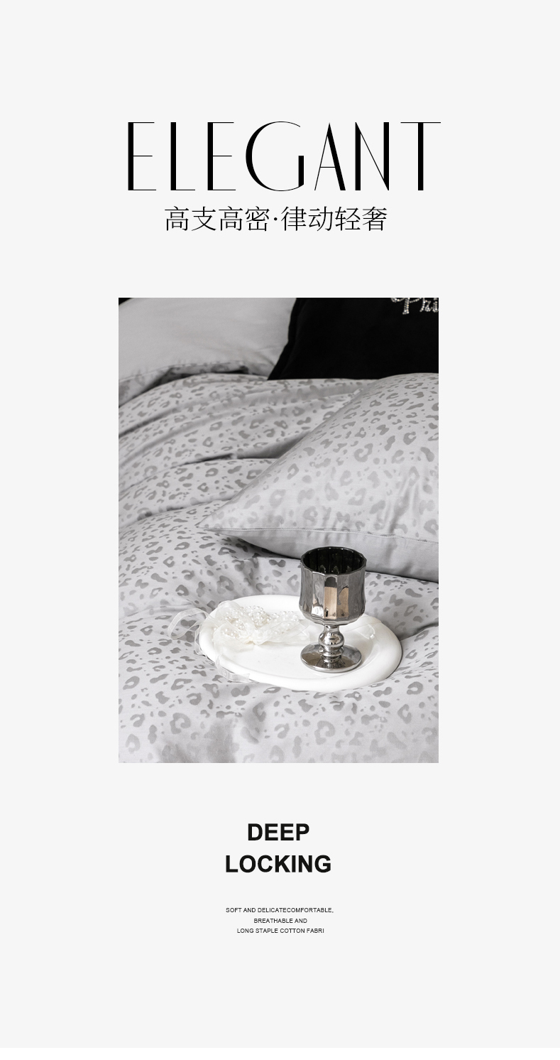 商品名称:立奥被业 2025新款60支全棉贡缎提花四件套 豹纹灰