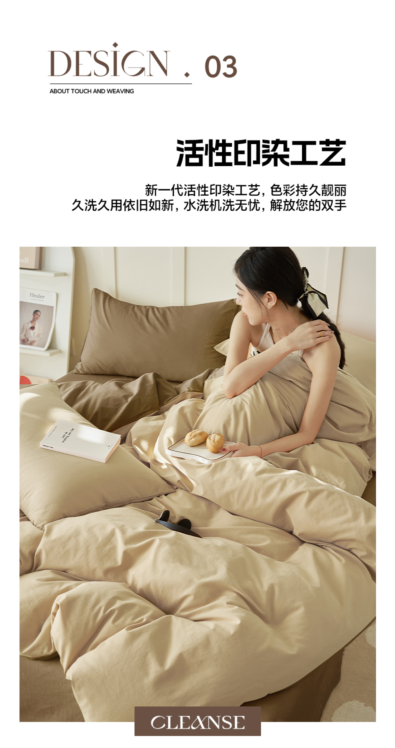 • 91家纺网 家纺一手货源 找家纺 寐绸家纺 2025新款纯棉水洗棉双拼单被套(自然光) 豆沙+毛毯灰