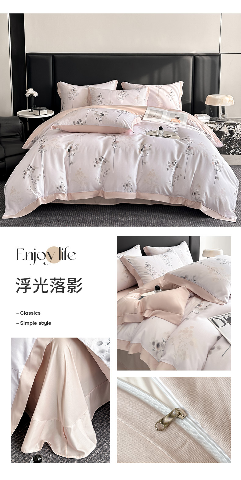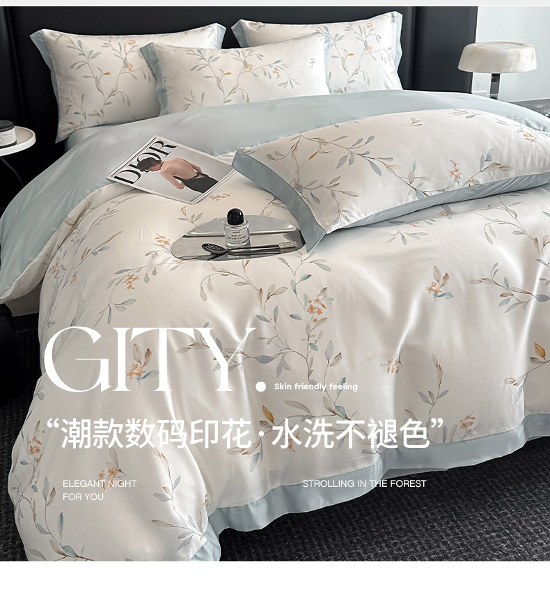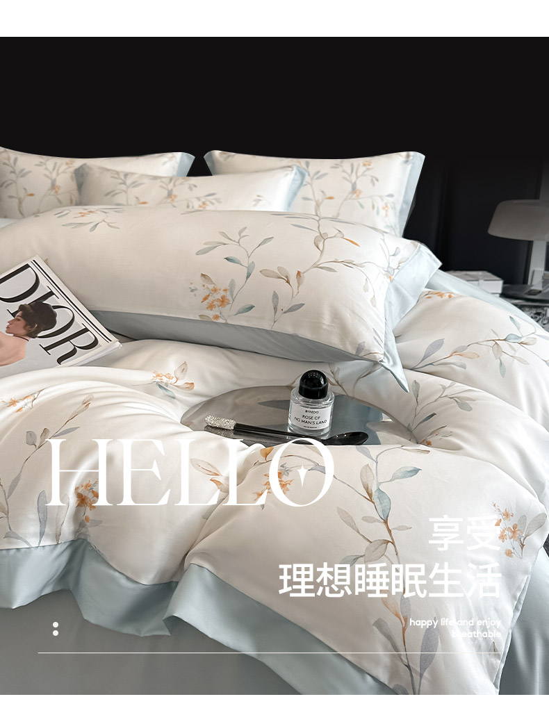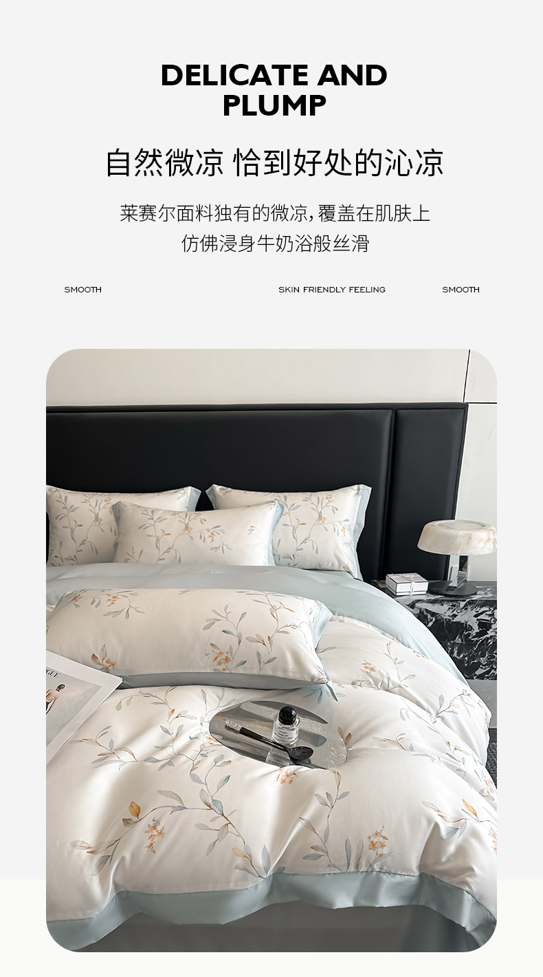 商品名称:(总)金阳光家纺 2025新款高级简奢款莱赛尔数码印宽边四件套(带礼盒包装)