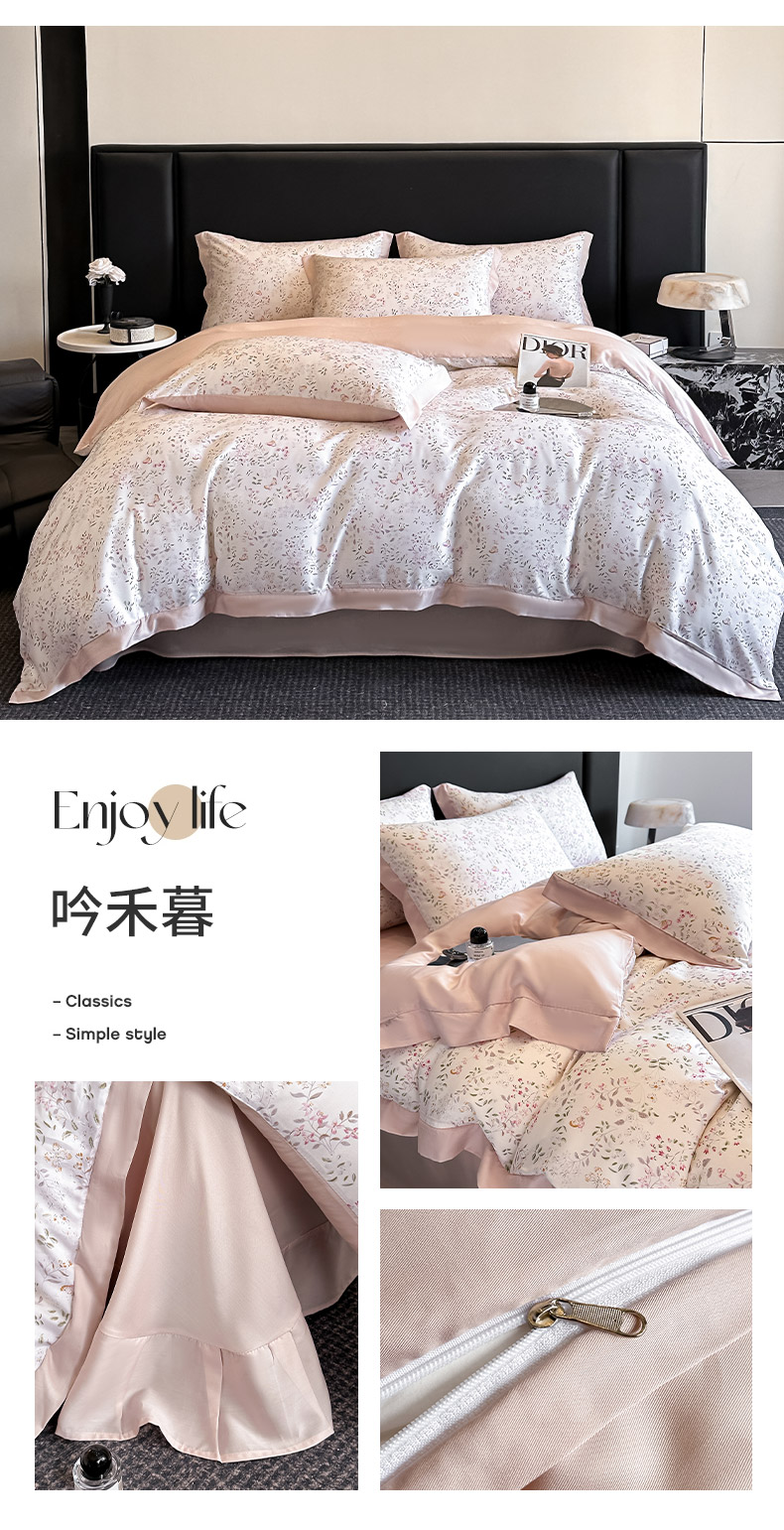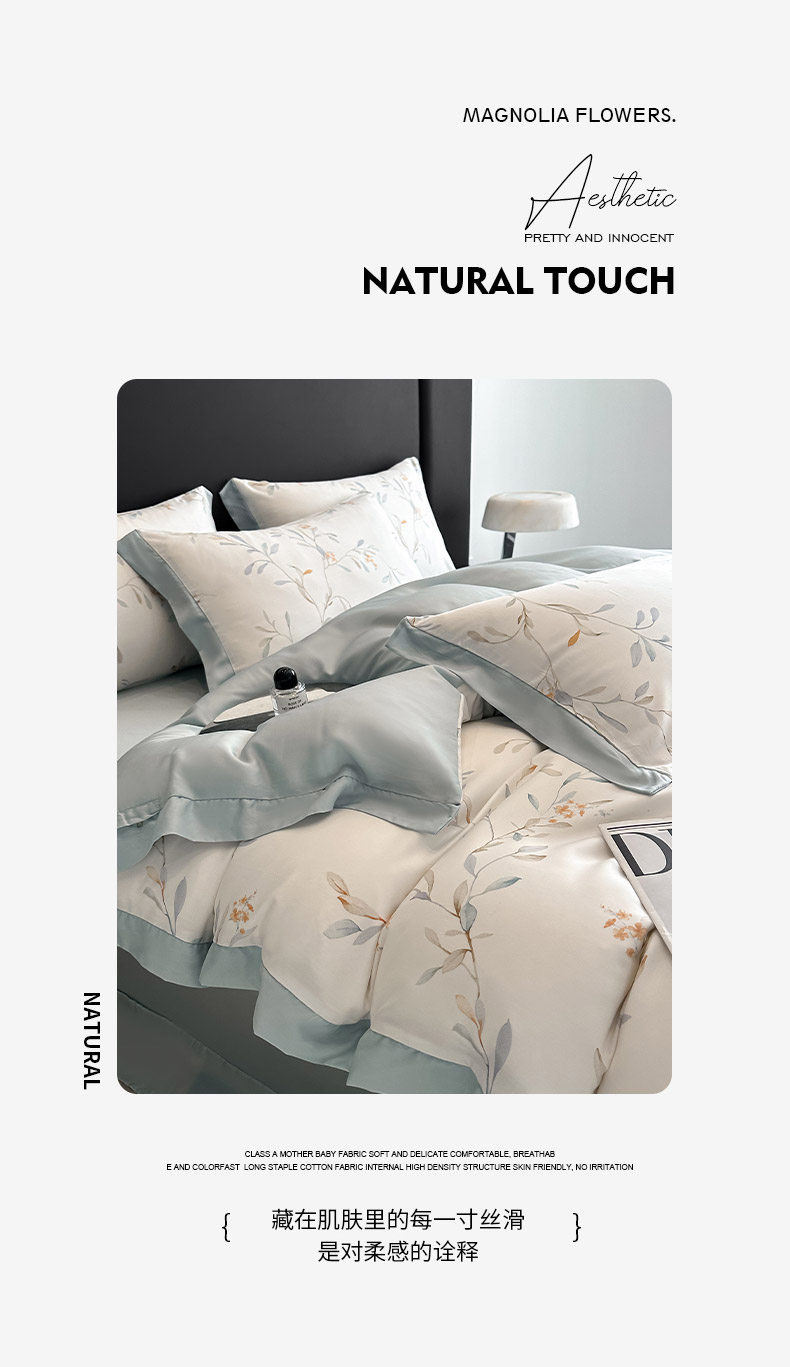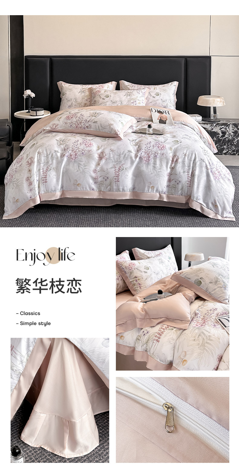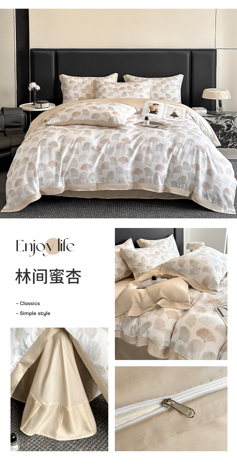 商品名称:(总)金阳光家纺 2025新款高级简奢款莱赛尔数码印宽边四件套(带礼盒包装)