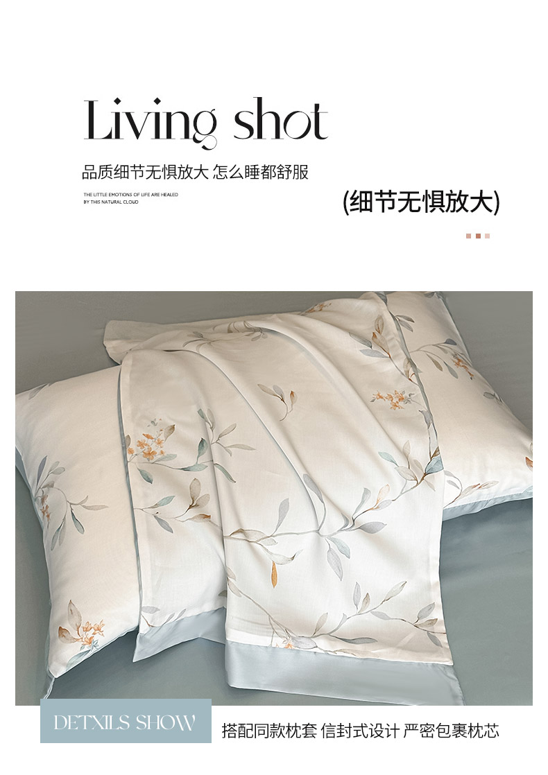 (总)金阳光家纺 2024新款水洗天丝数码印花四件套家用床品套件,叶叶相思-粉,叶叶相思-蓝,叶叶相思-绿