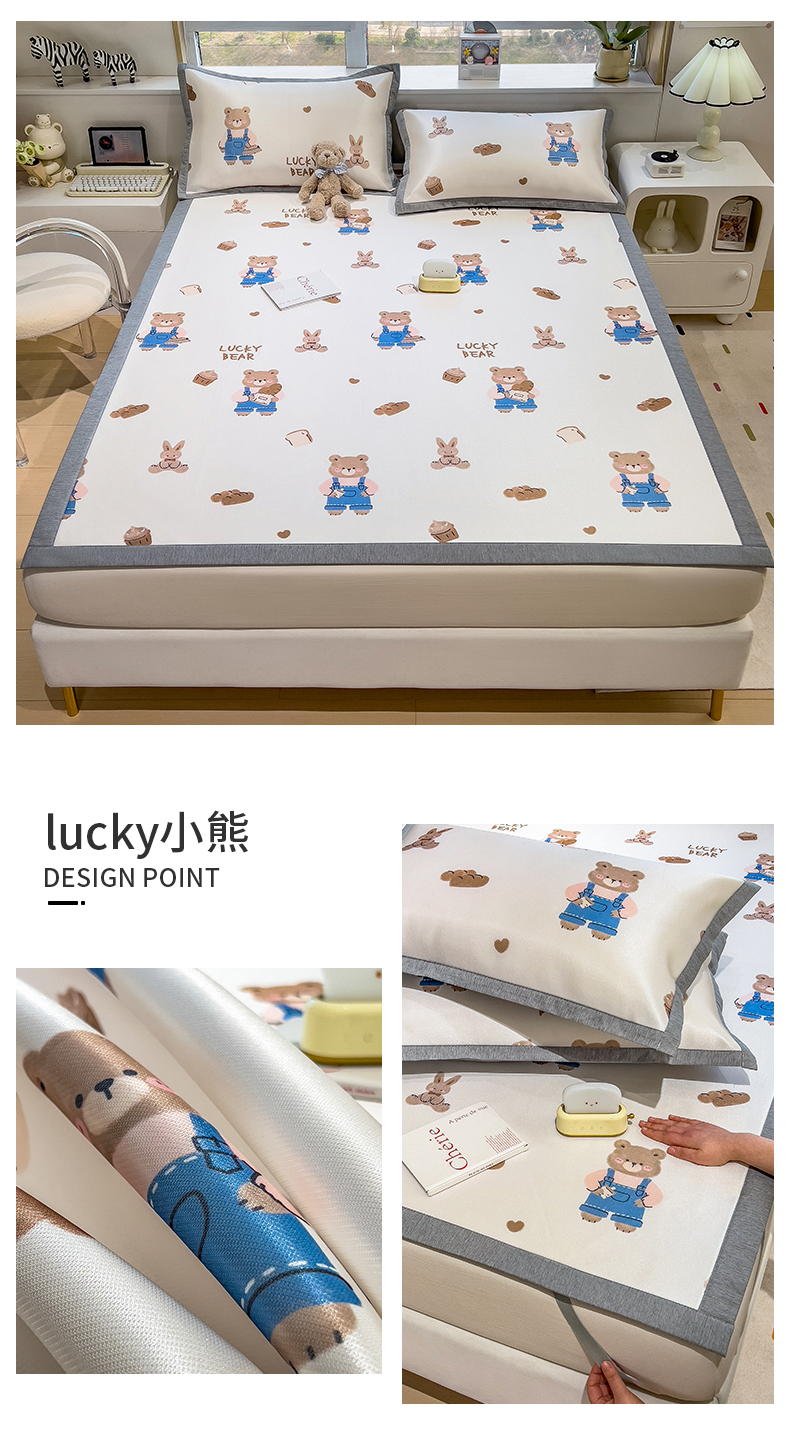 商品名称:兄弟坊 2025新款数码小清新印花冰丝席 lucky小熊